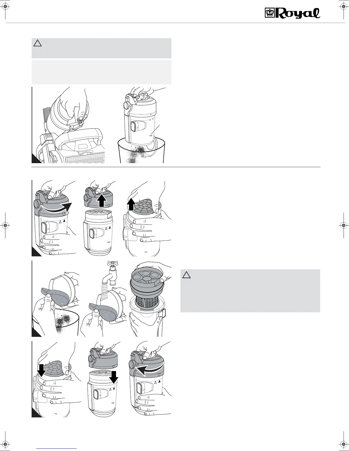 l'unité cyclone“: Sinon le bac à poussière ne peut pas être nettoyé.