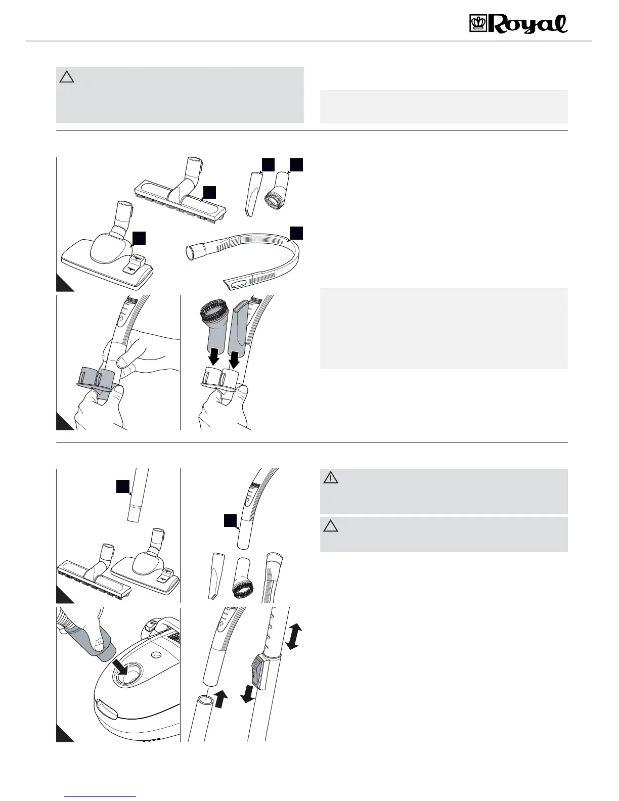 1. Attach the selected nozzle to the bottom end of the telescopic tube
