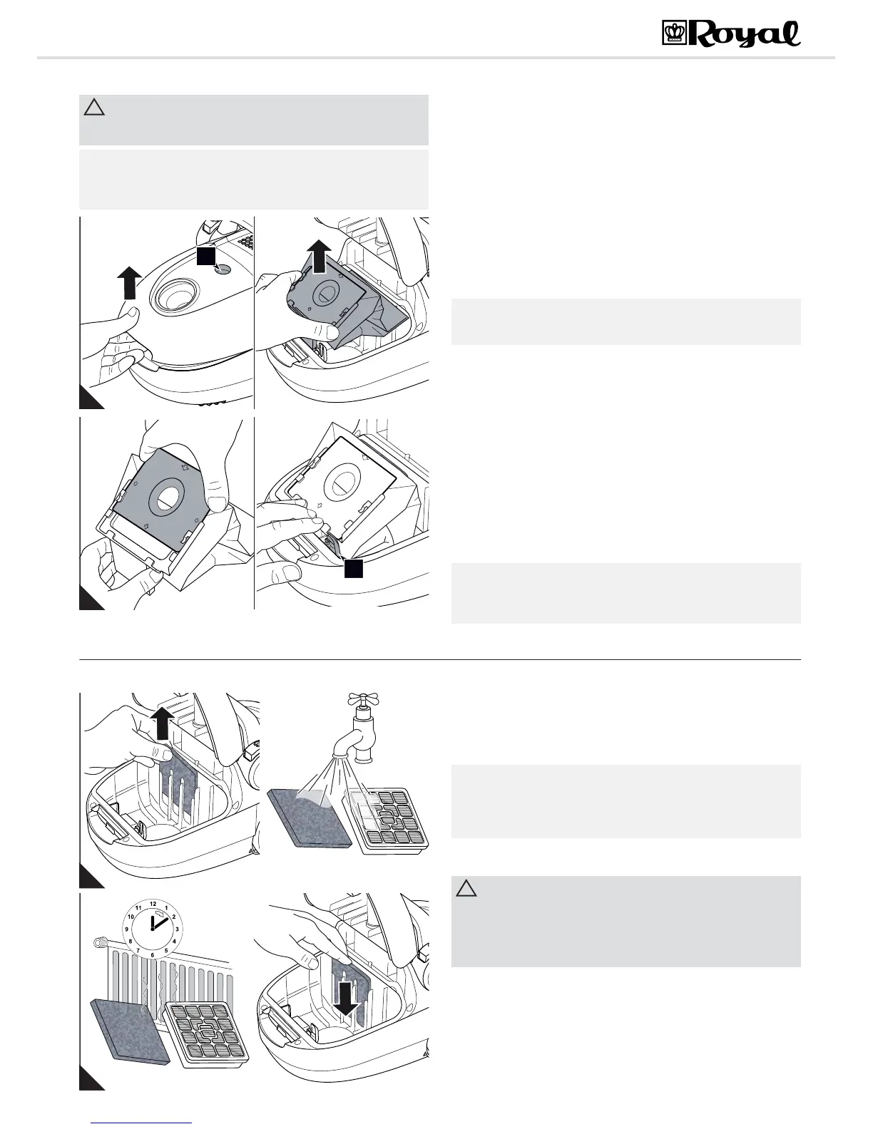 6. Insérez un nouveau sac-filtre à poussière, comme indiqué sur
