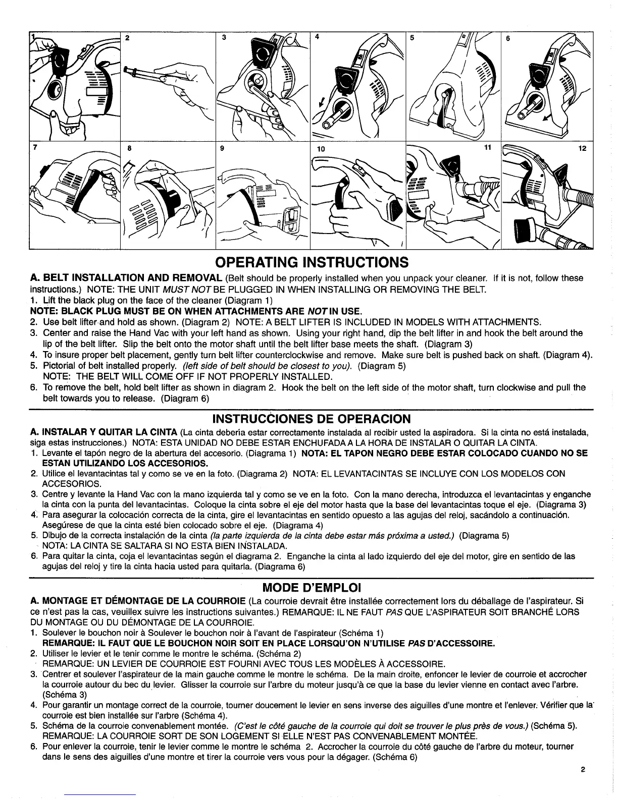 Use belt lifter and hold as shown. (Diagram 2) NOTE: A BELT LIFTER IS INCLUDED IN MODELS WITH ATTACHMENTS.