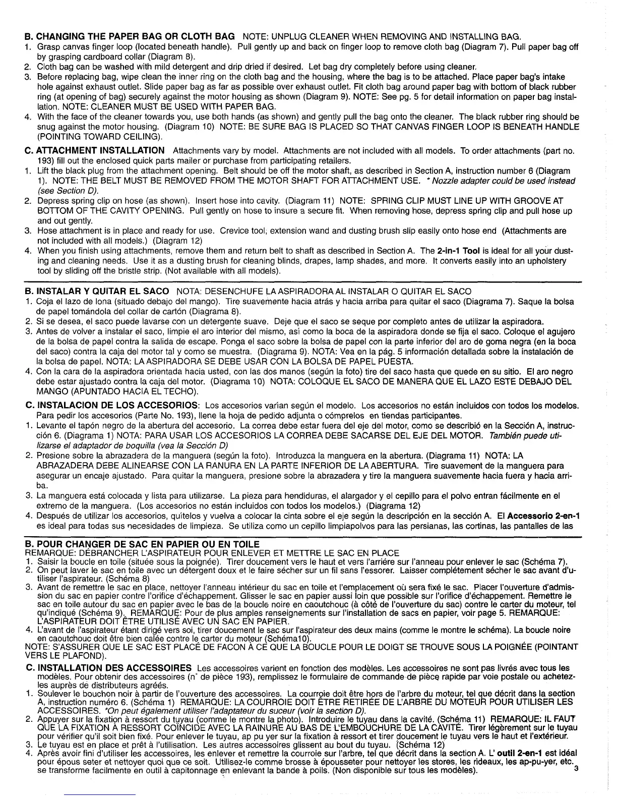 lation. NOTE: CLEANER MUST BE USED WlTH PAPER BAG.