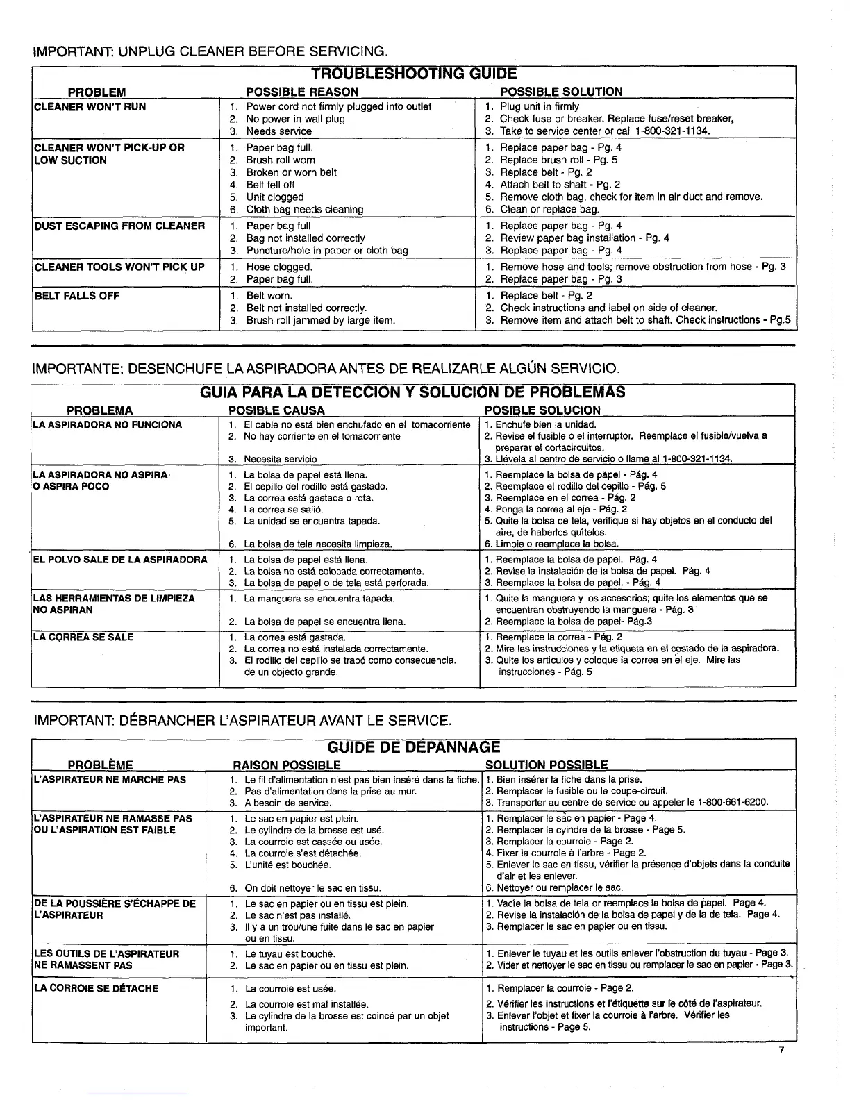 IMPORTANT UNPLUG CLEANER BEFORE SERVICING.