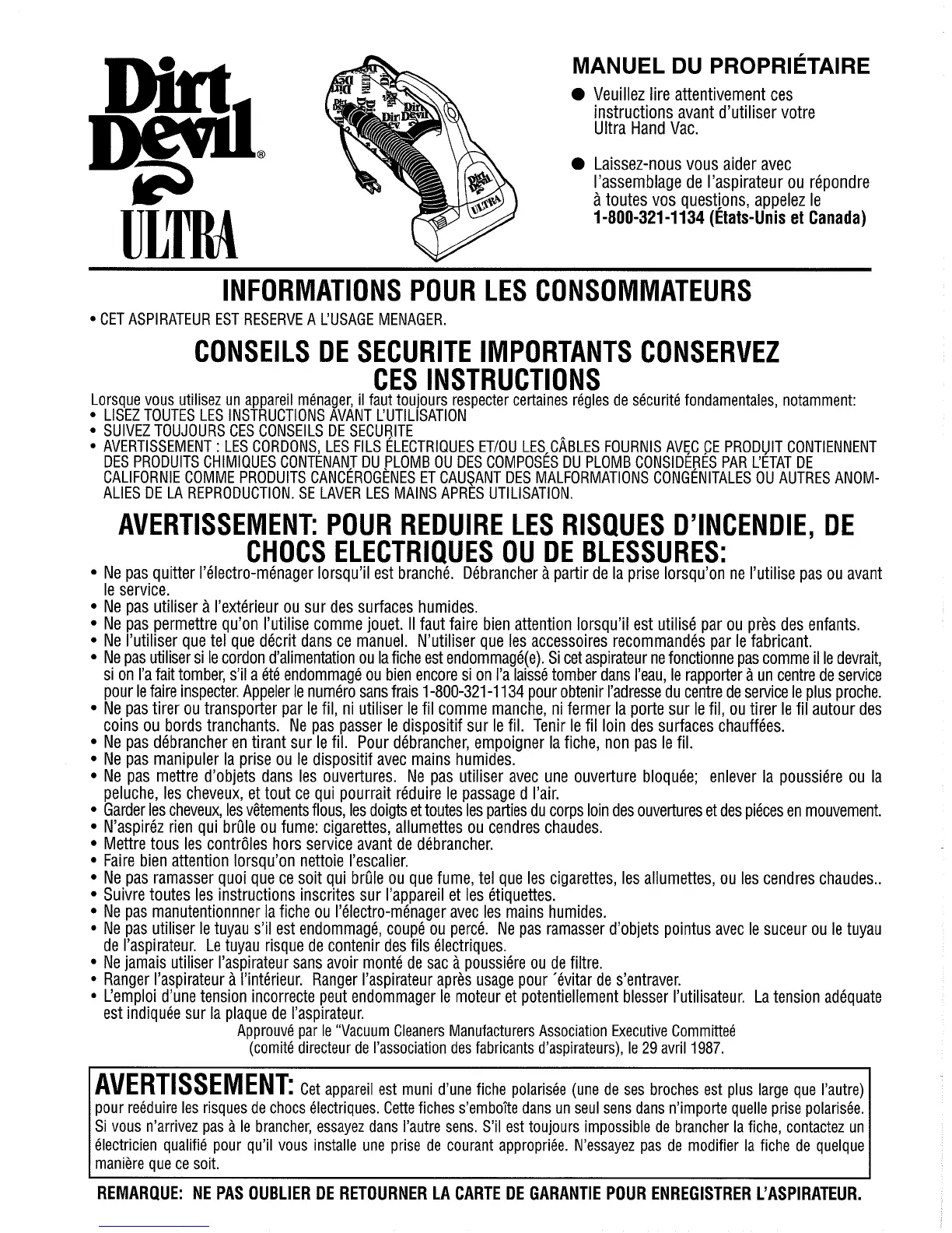 Approuve par le "Vacuum Cleaners Manufacturers Association Executive Committee