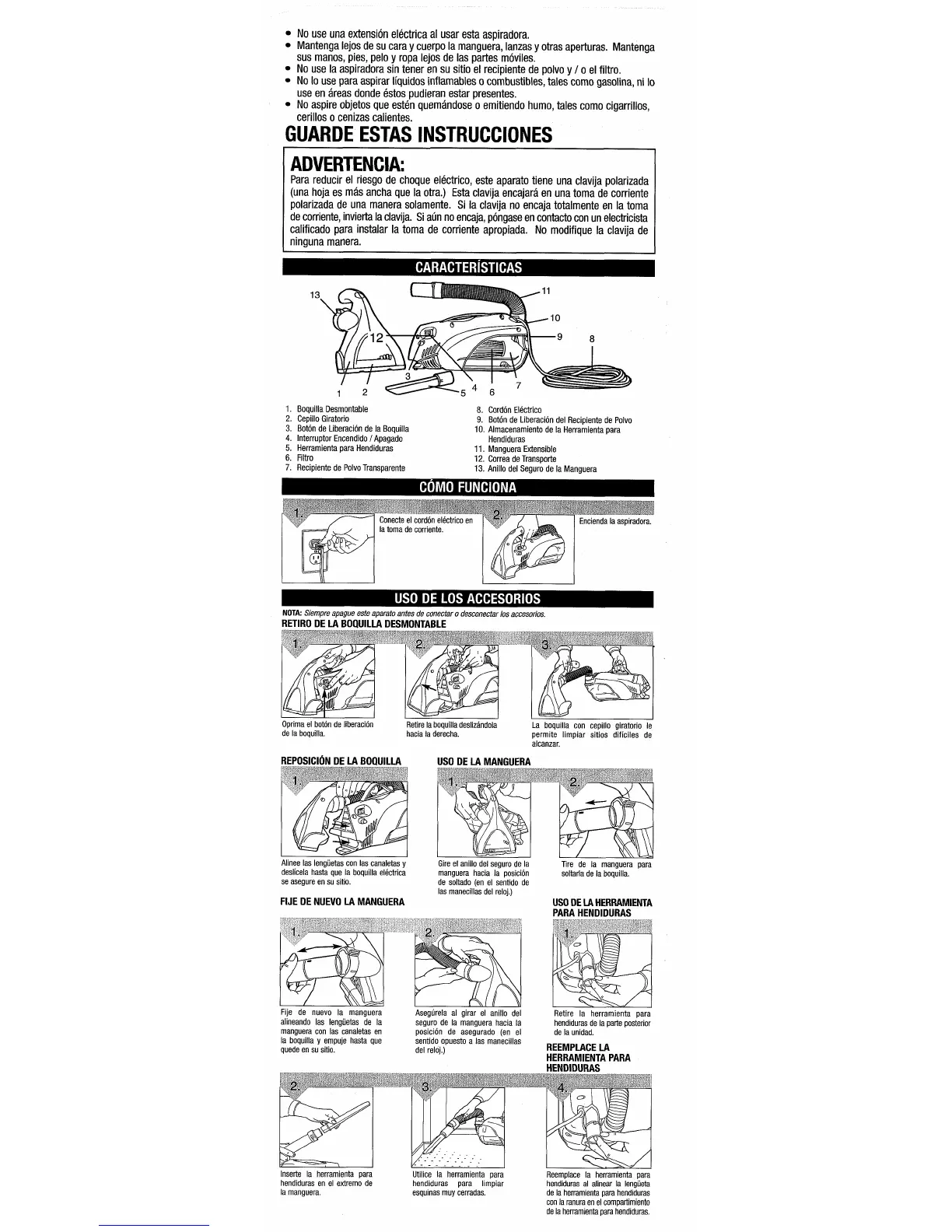 No use una extension electrica al usar esta aspiradora.