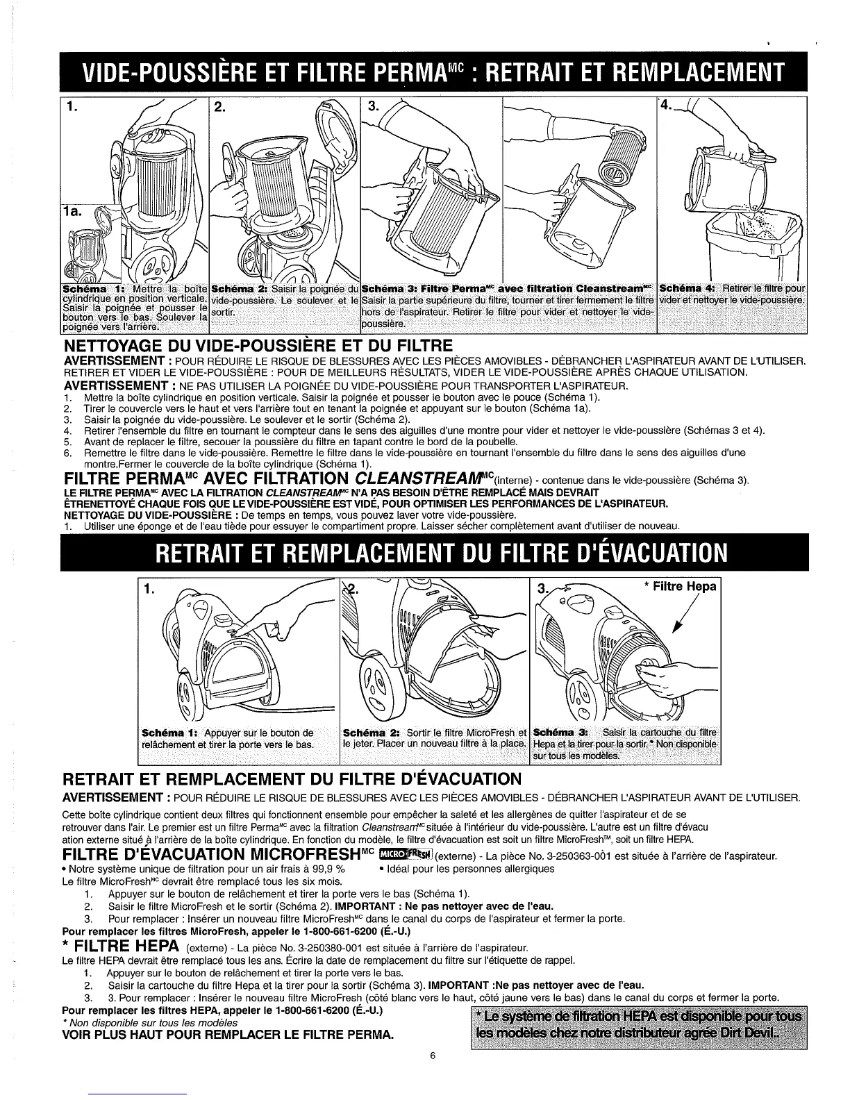 2. Saisir la cartouche du filtre Hepa et la tirer pour la sortir (Schema 3). IMPORTANT :Ne pas nettoyer avec de I'eau.