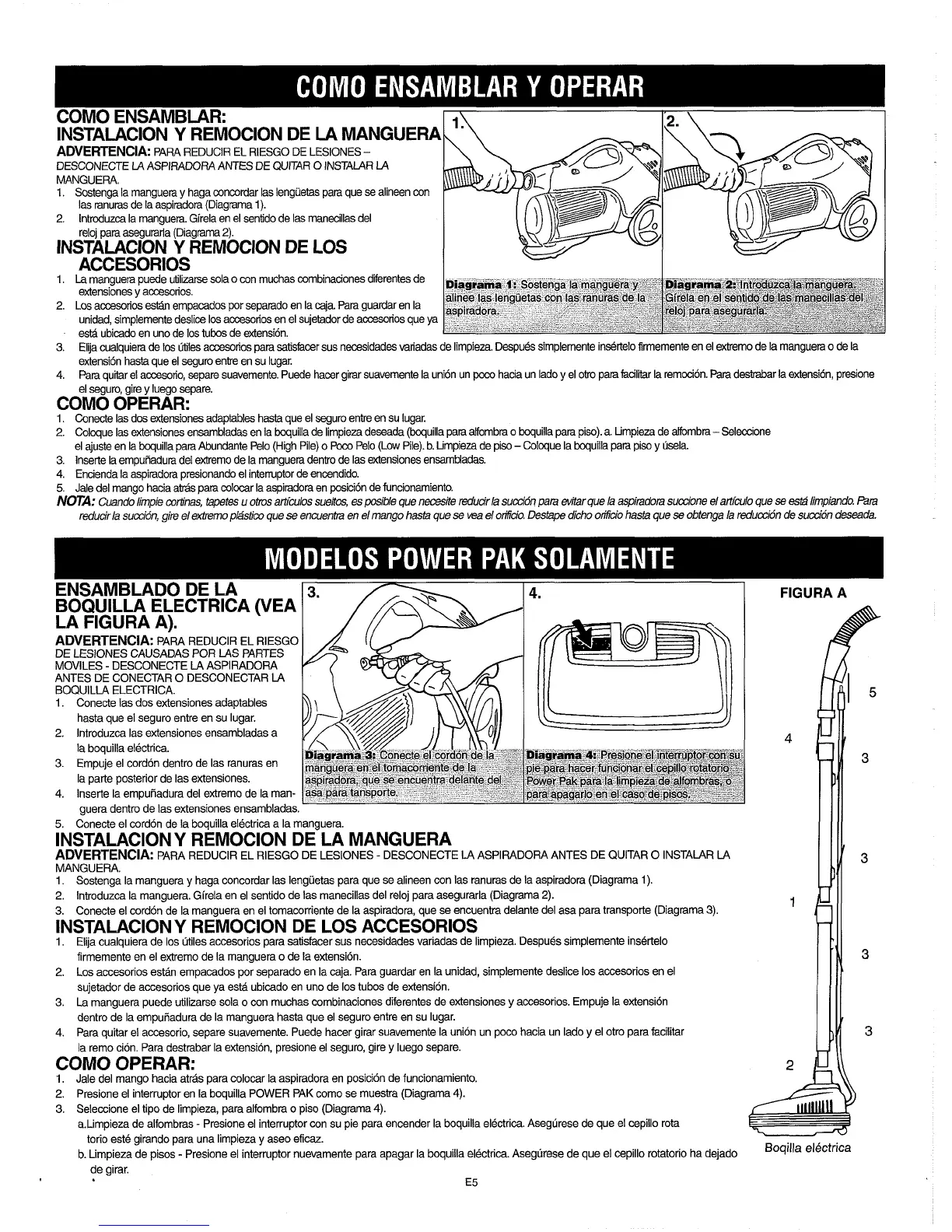 Colcque las extensiones ensambladas en la bcquilla de lirnpieza deseada (bcquilla para ahnbra o bcquilla para piso). a. Lirnpieza de alfornbra