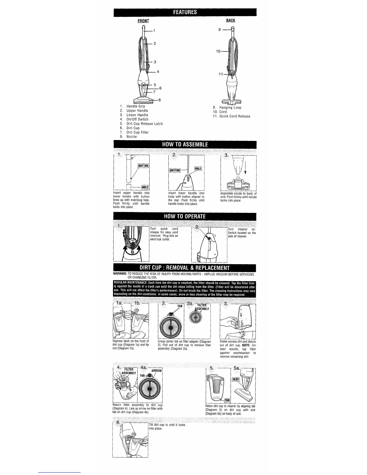 tab on dirt cup (Diagram 4a).