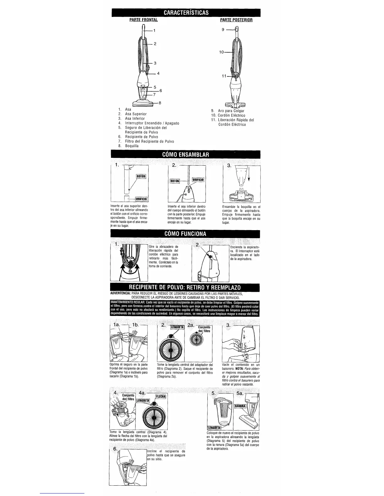 DESCONECTE LA ASPIRADORA ANTE DE CAMBIAR EL FILTRO 0 DAR SERVICIO.