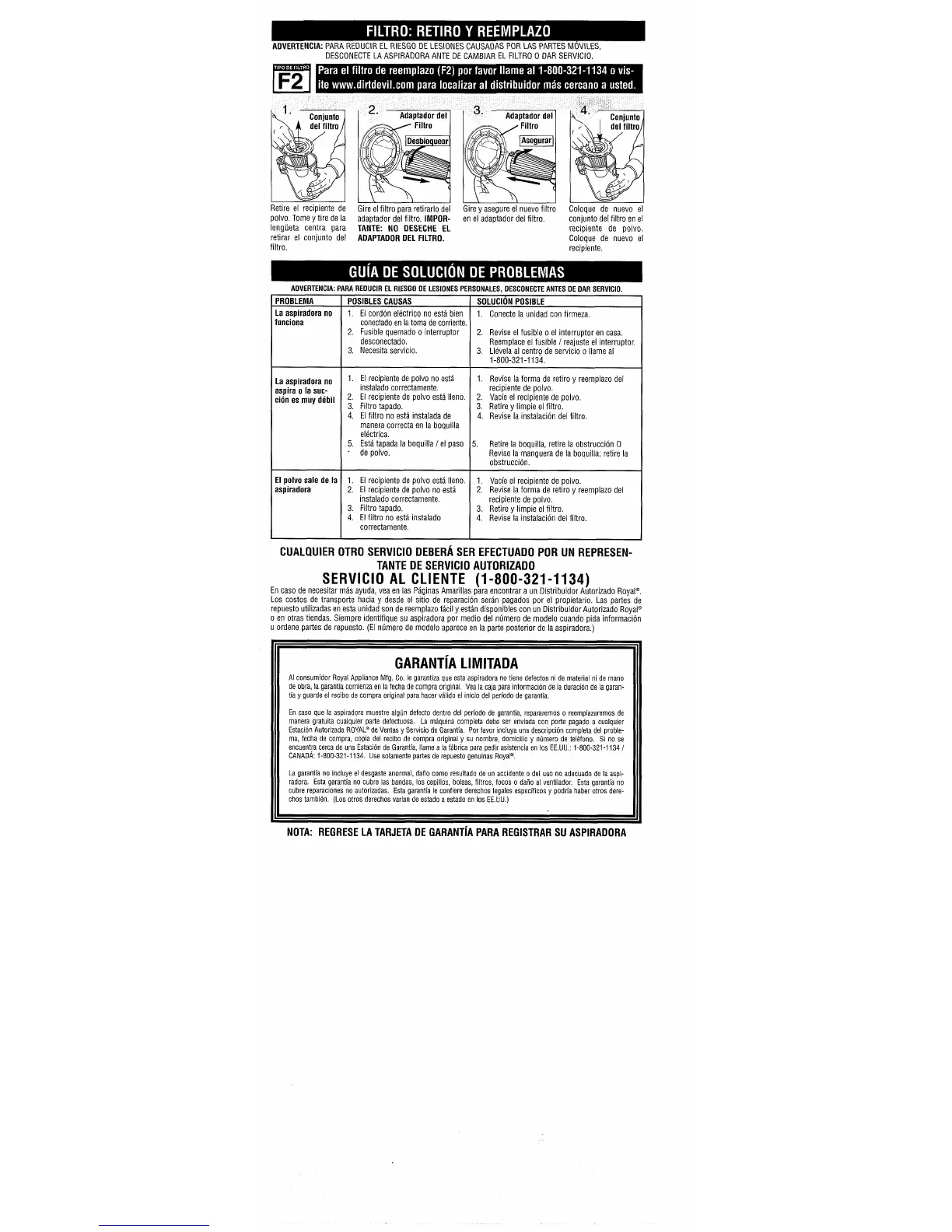 CANADA: 1-800-321-1134. Use solamente partes de repuesto genuinas Royal?