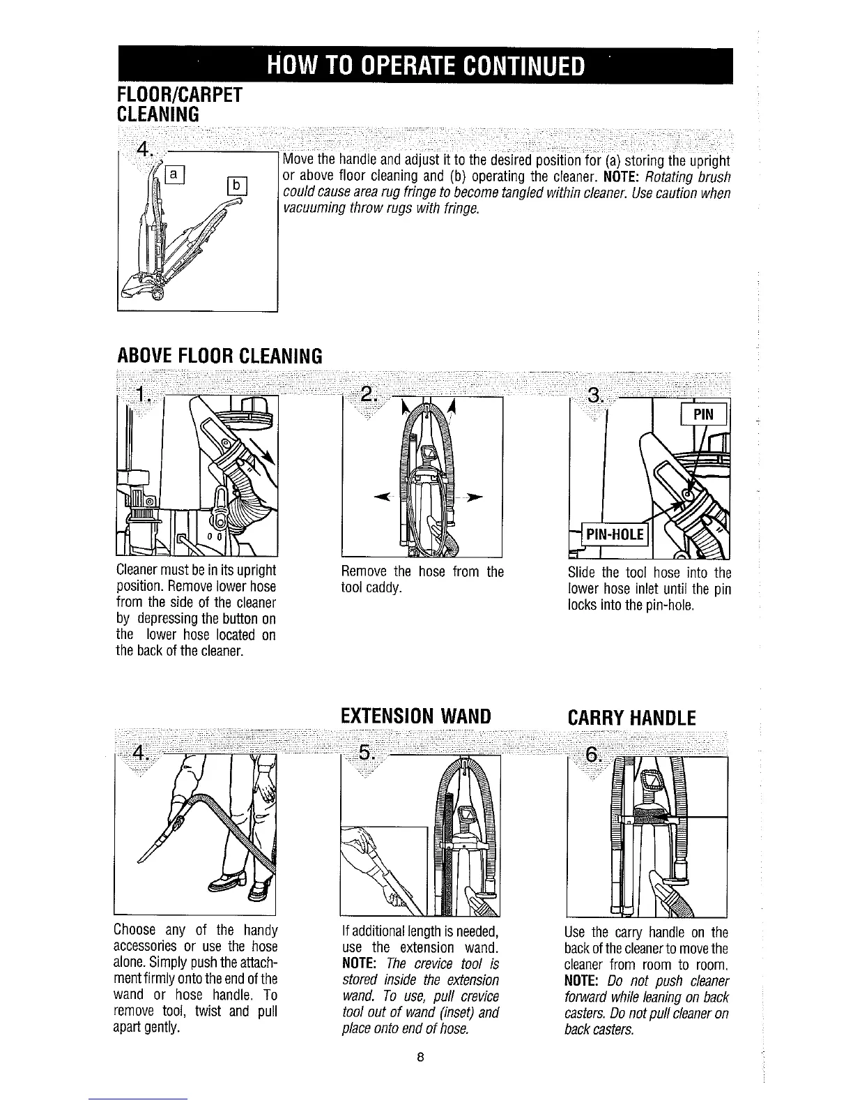 Dirt Devil M085610 - Floor and Carpet Cleaning; Above Floor Cleaning; Extension Wand Usage; Using the Carry Handle
