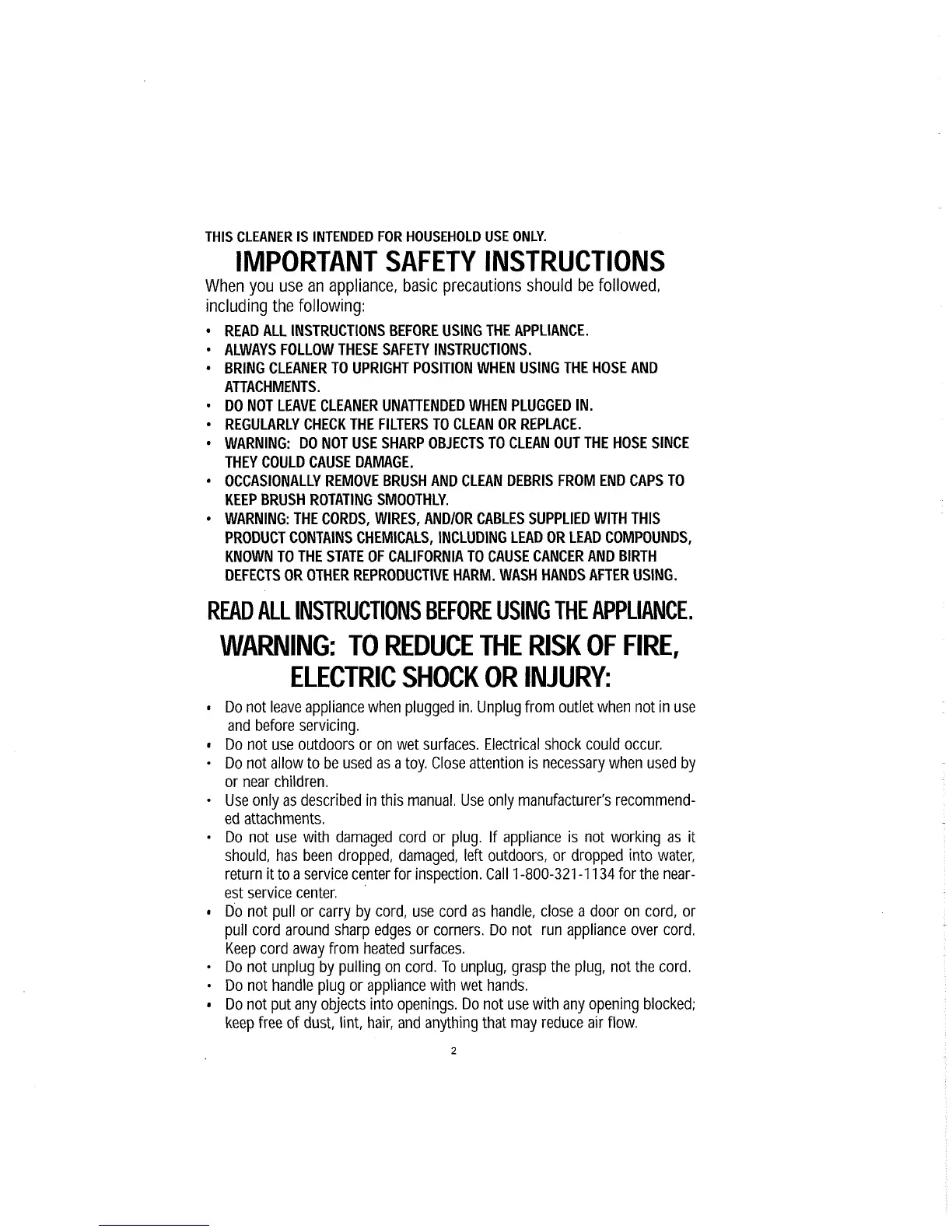 READ ALL INSTRUCTIONS BEFORE USING THE APPLIANCE.