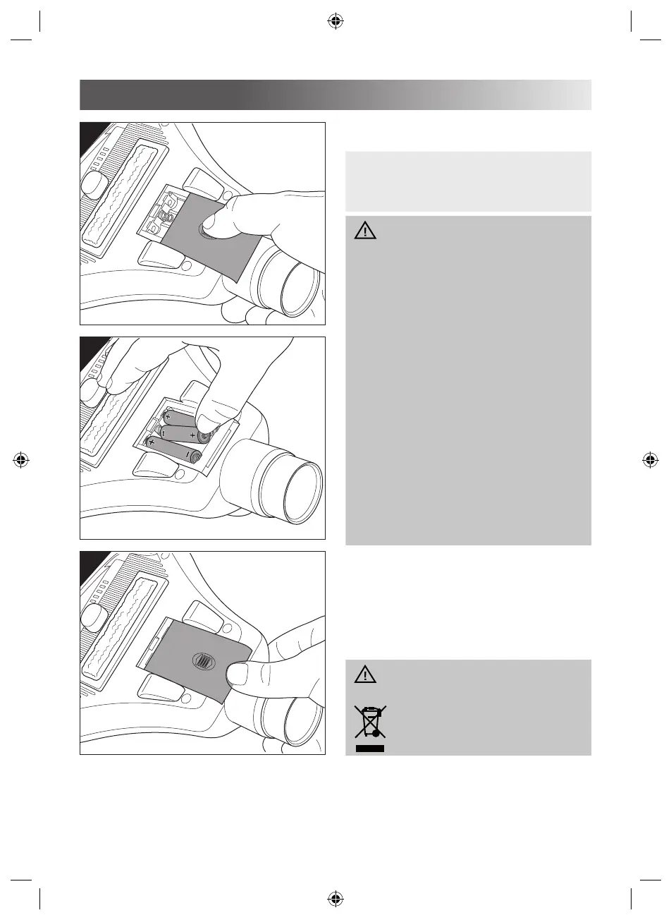 3. Leg de batterijen (3x type AAA, 1,5 V) zoals