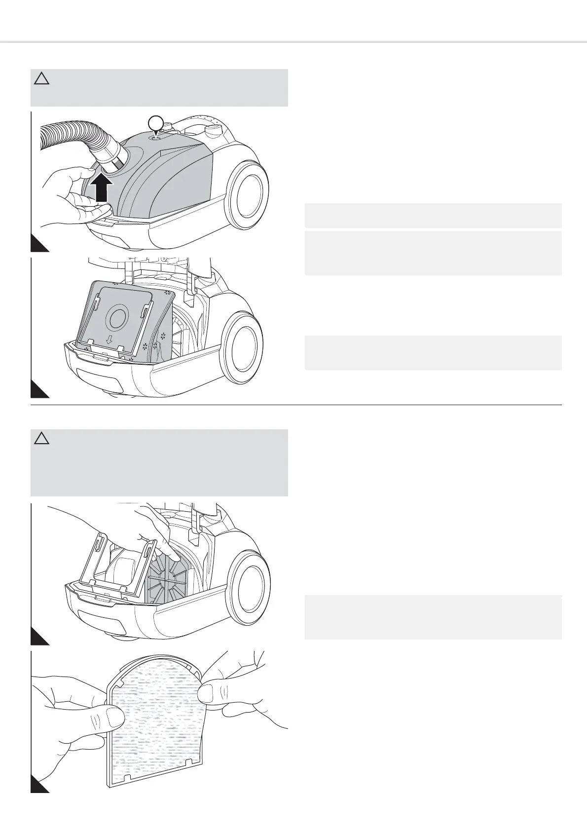 1. Switch off the appliance and remove the filter bag holder with the dust