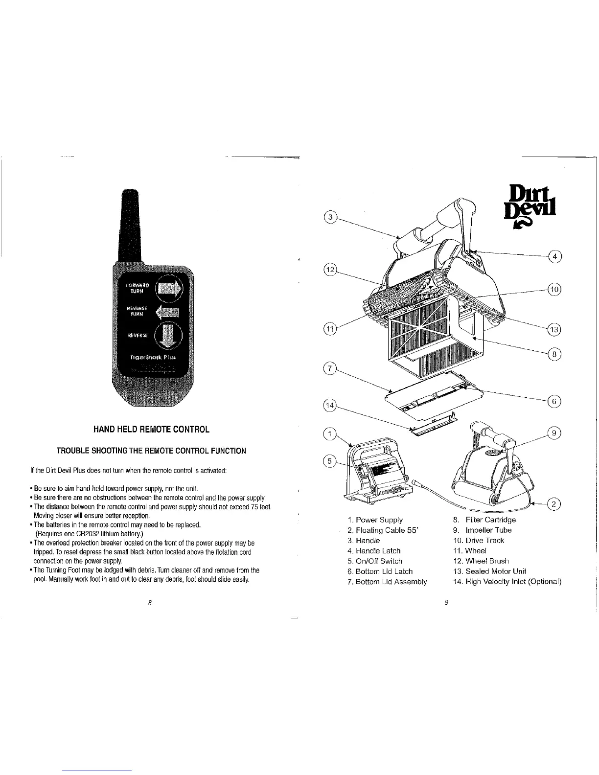 Dirt Devil Plus - Hand Held Remote Control; Trouble Shooting the Remote Control Function