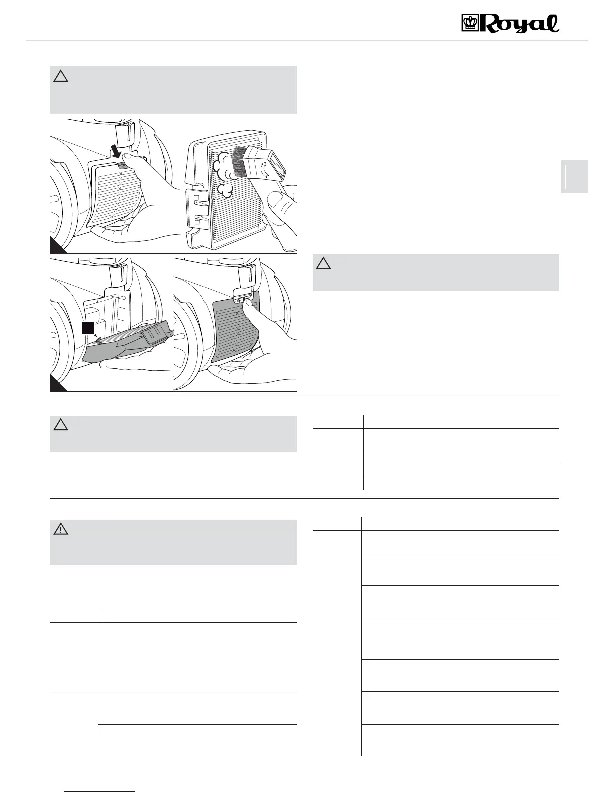 Clean the filters each time you clean the dust container, ZChapter 5.1,