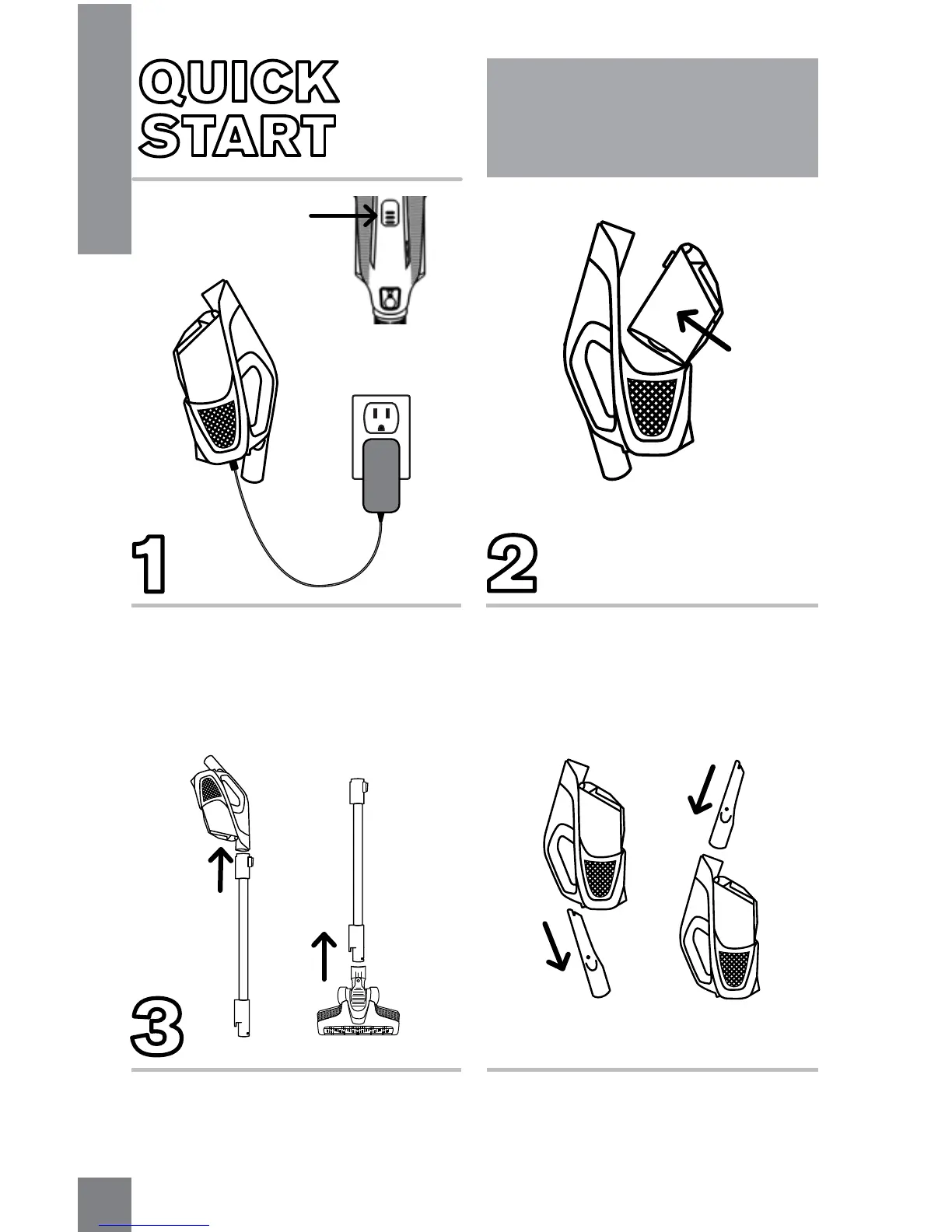 Dirt Devil reach max BD22520 - Quick Start Assembly Guide; Initial Charging of the Unit; Assembling Vacuum Components