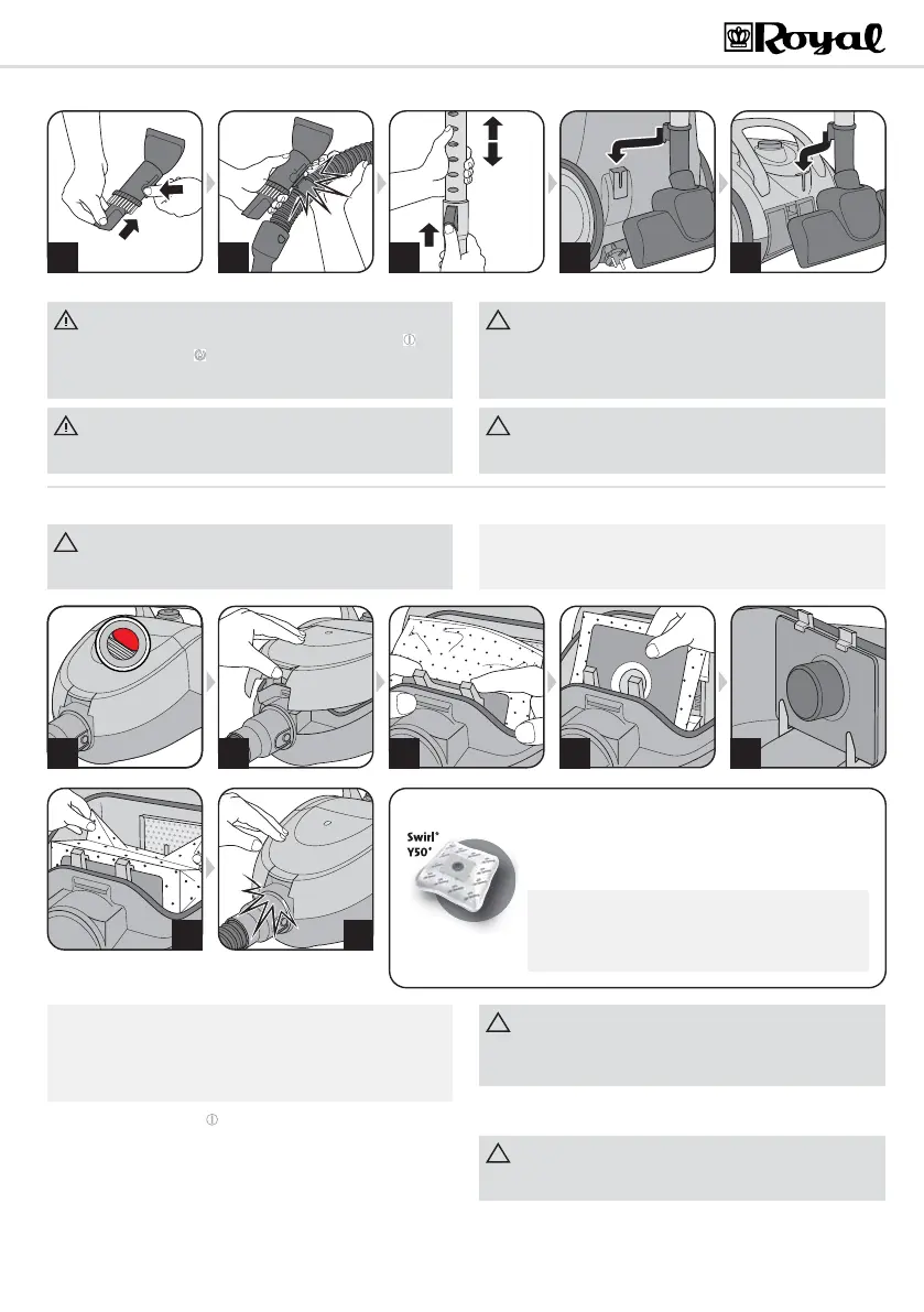 Switch off the appliance before changing the dust filter bag. Otherwise,