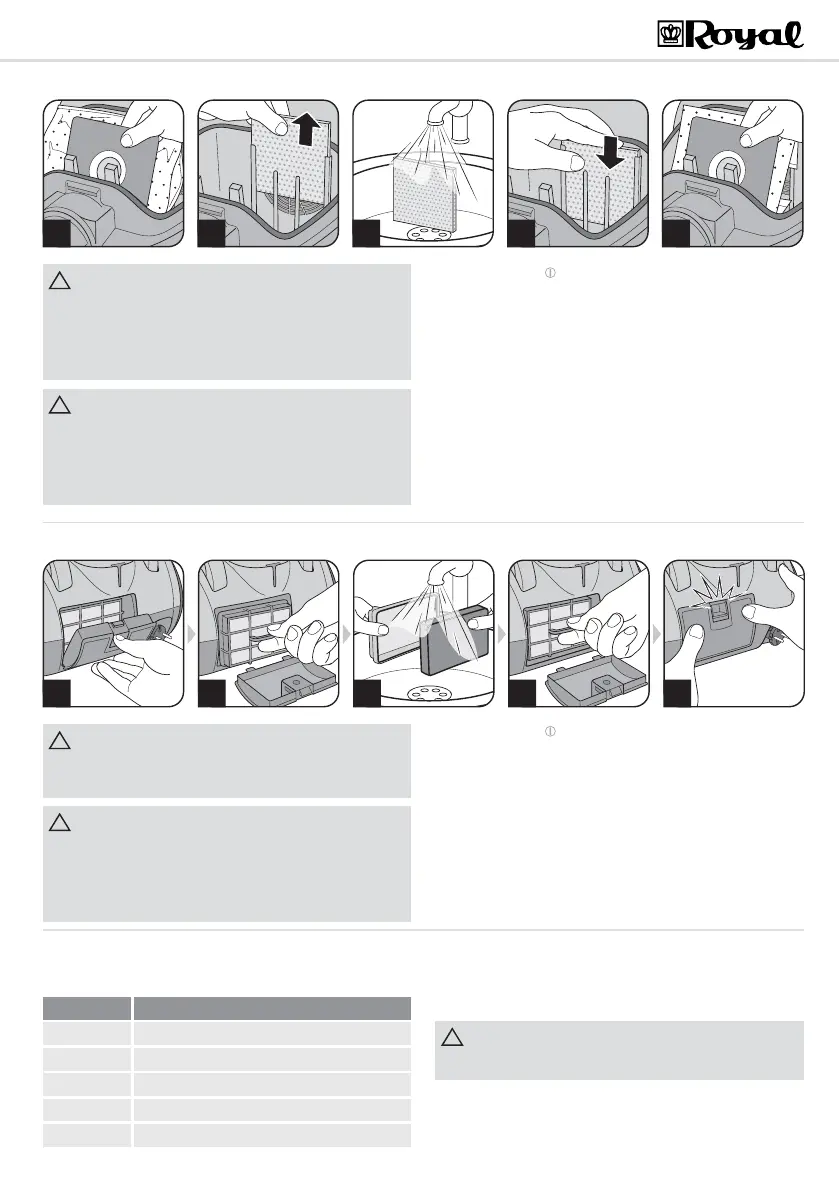 sécher le filtre après son nettoyage à l'eau (laissez-le sécher durant