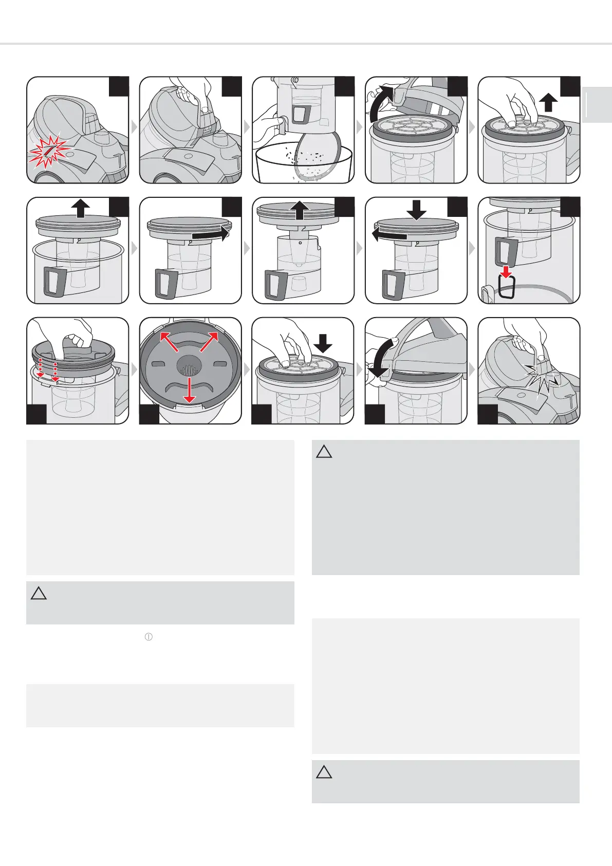 Der Staubbehälter muss regelmäßig geleert und gereinigt werden. Ande-
