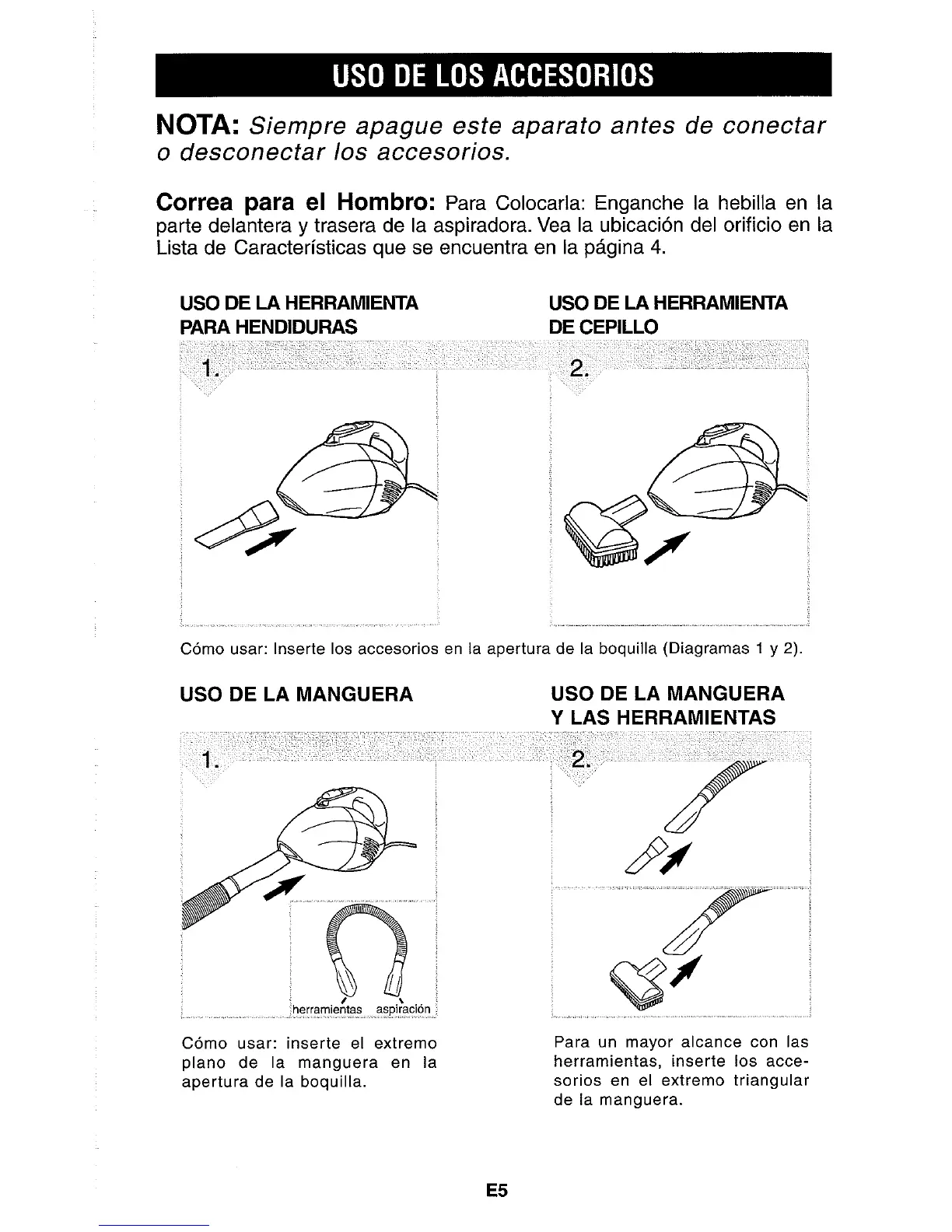 Como usar: lnserte 10s accesorios en la apertura de la boquilla (Diagramas