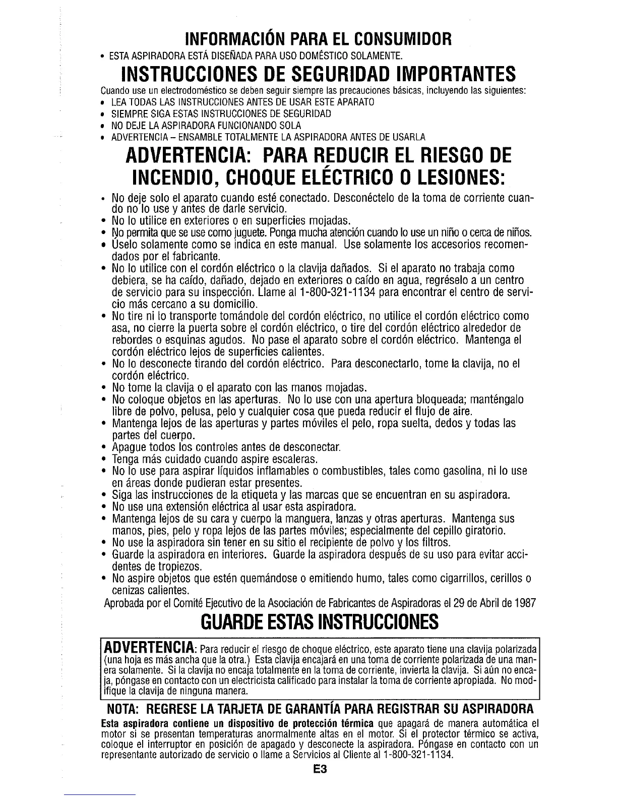 Aprobada por el Comite Ejecutivo de la Asociacion de Fabricantes de Aspiradoras el 29 de Abril de 1987