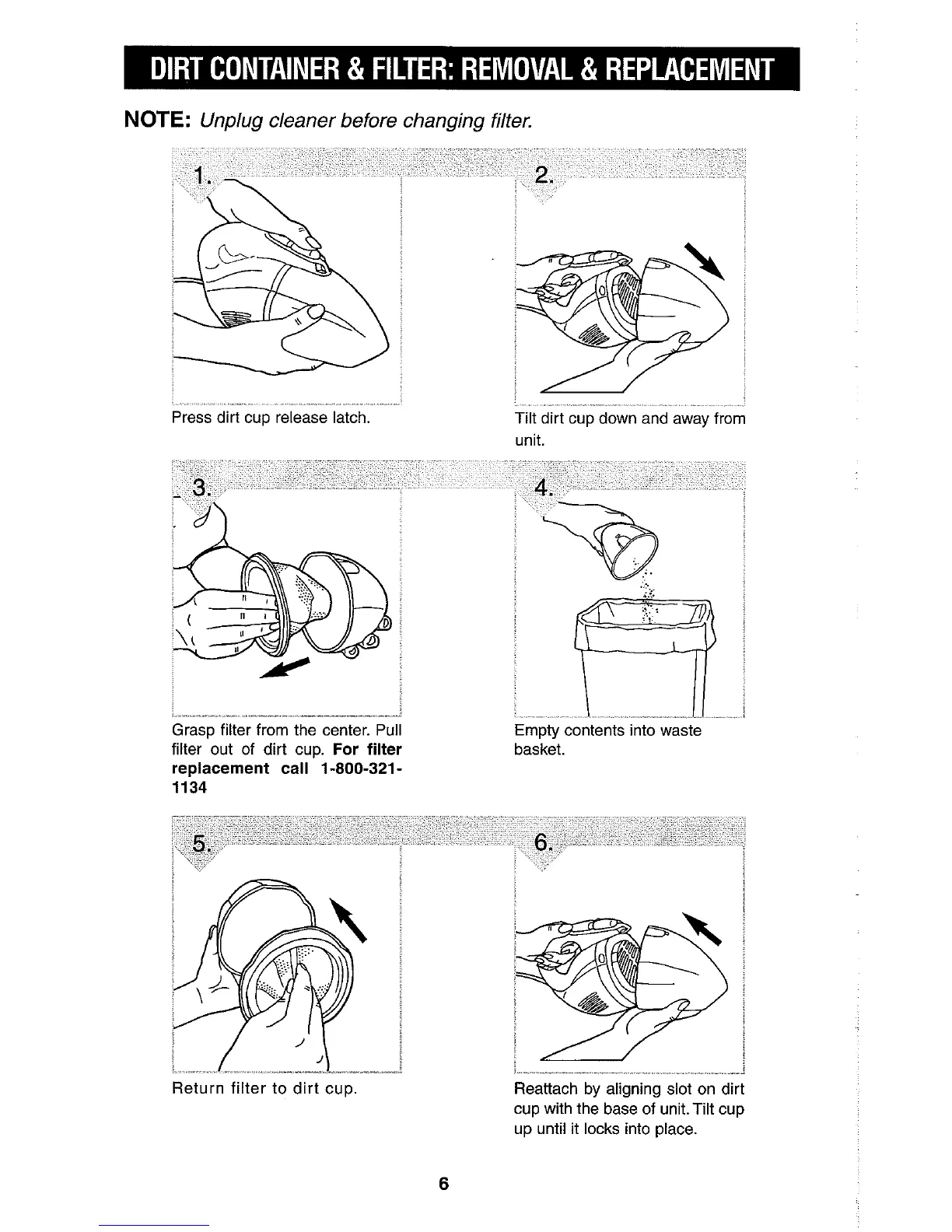 Return filter to dirt cup.