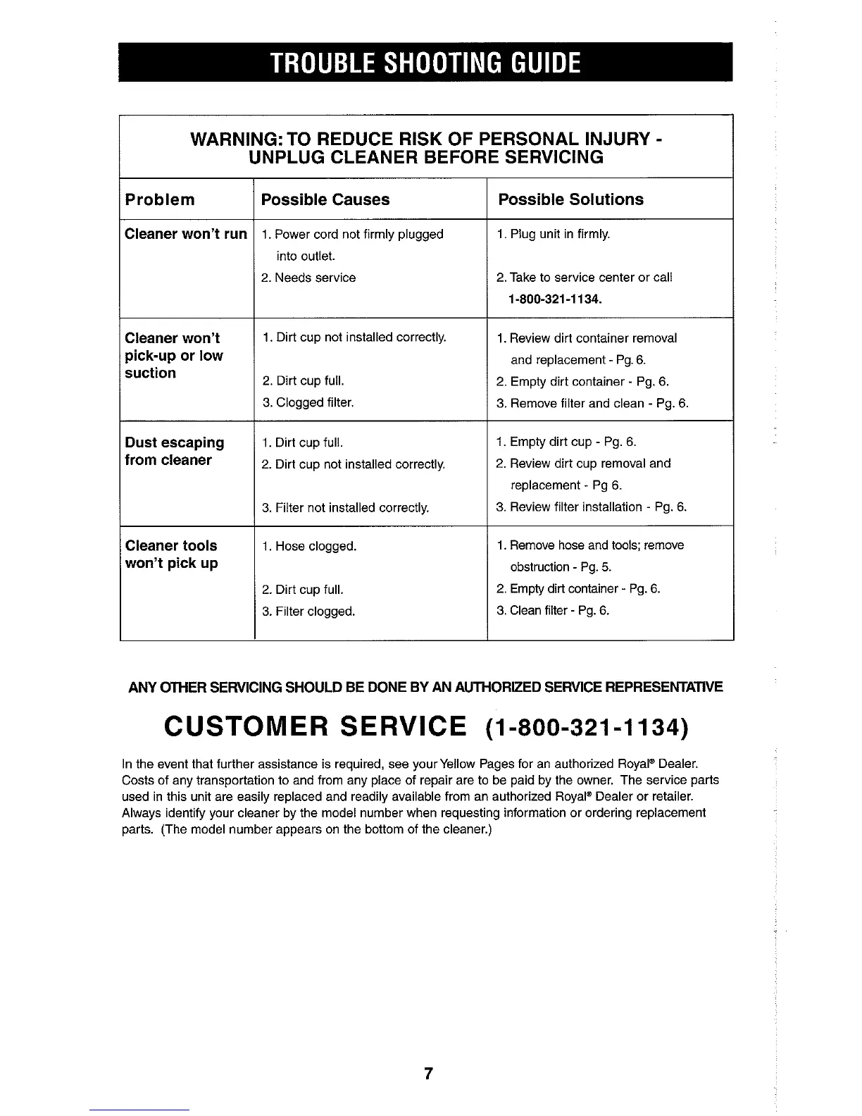 In the event that further assistance is required, see yourYellow Pages for an authorized Royala Dealer.