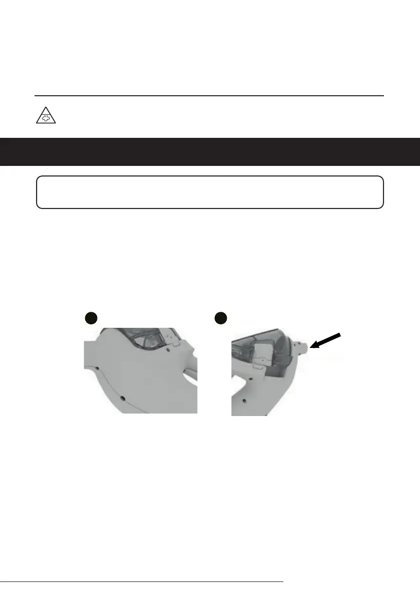 2. After the mop head is removed, take a thin object such as a paper clip and insert it in the area shown to