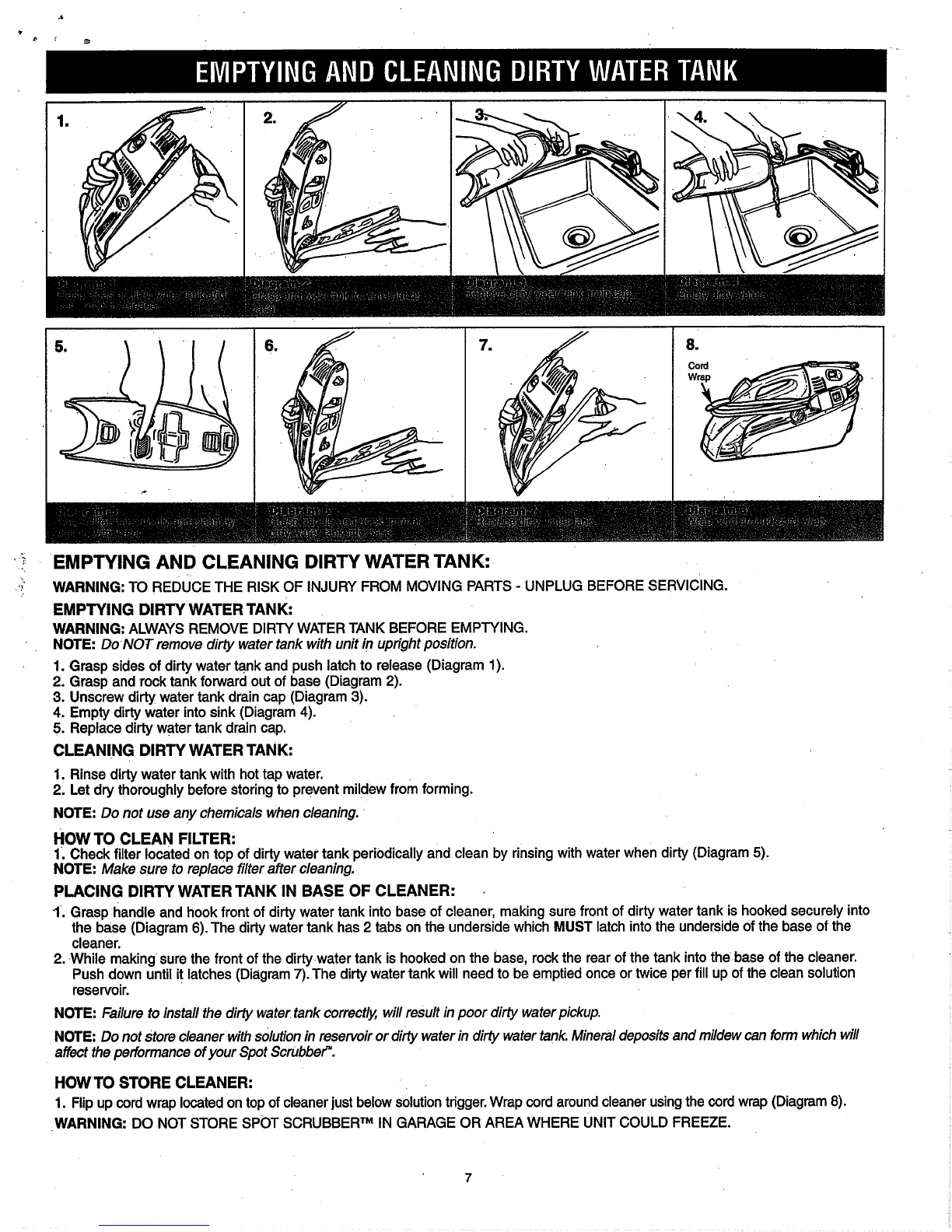 WARNING: DO NOT STORE SPOT SCRUBBERTM IN GARAGE OR AREA WHERE UNIT COULD FREEZE.