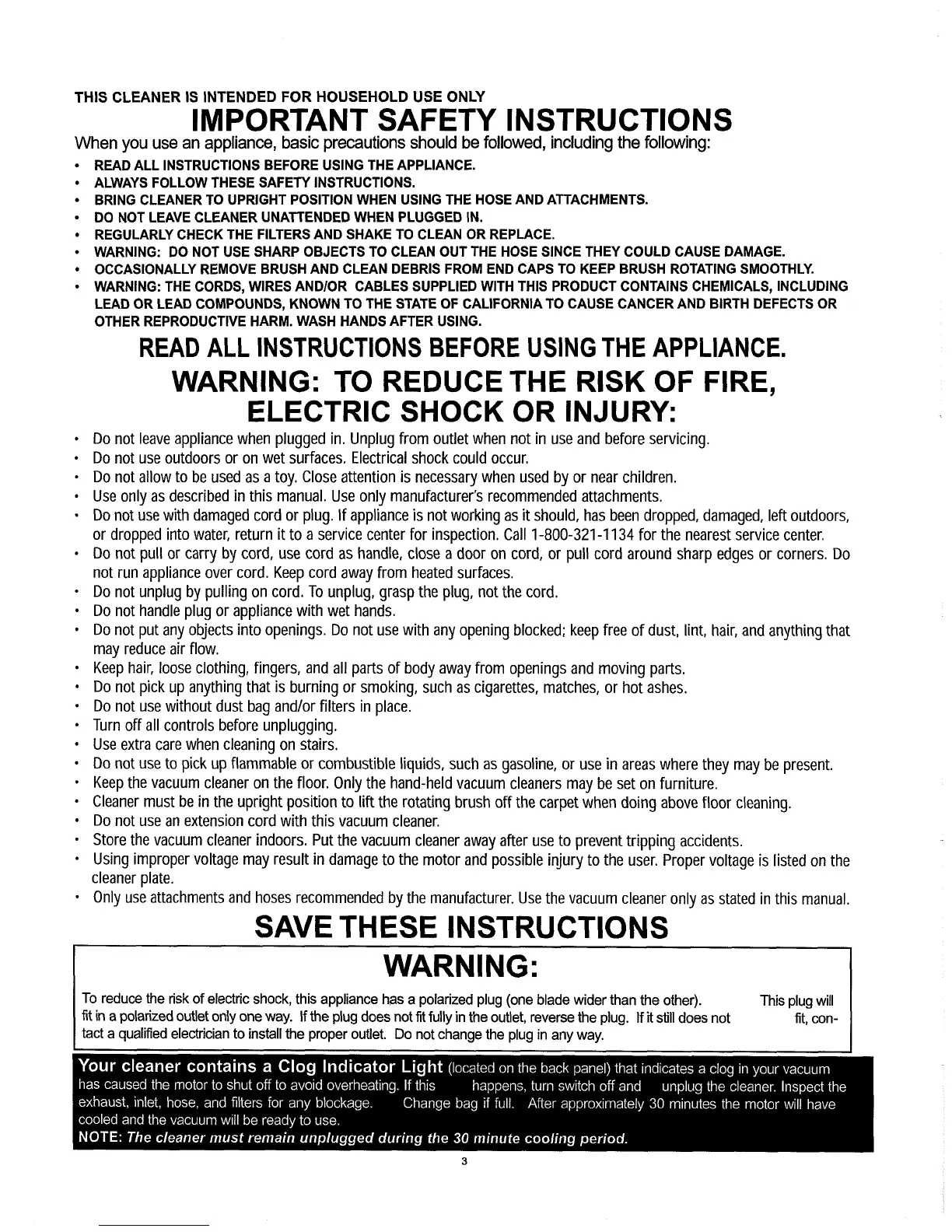 THlS CLEANER IS INTENDED FOR HOUSEHOLD USE ONLY