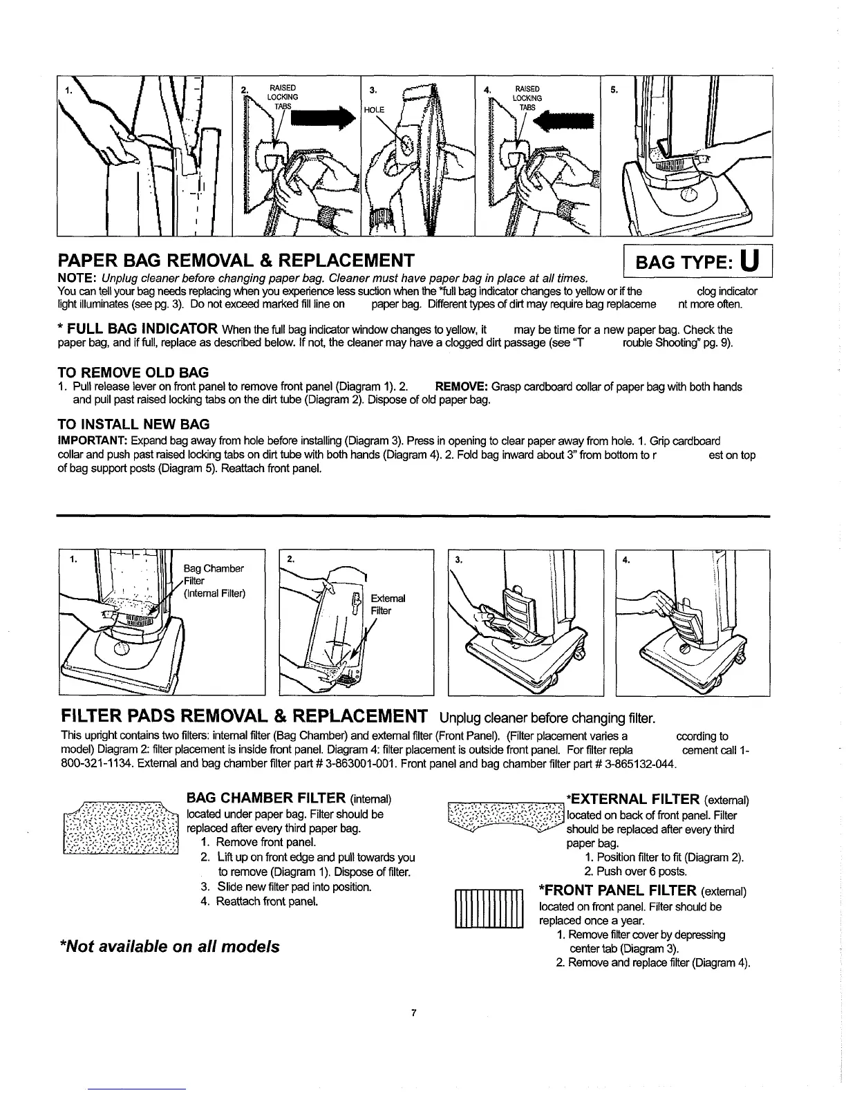 Unplug cleaner before changing paper bag. Cleaner must have paper bag in place at all times.