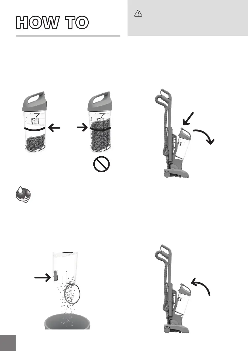 1. Dump the dirt when it's full. 2. Push the release button (A) then