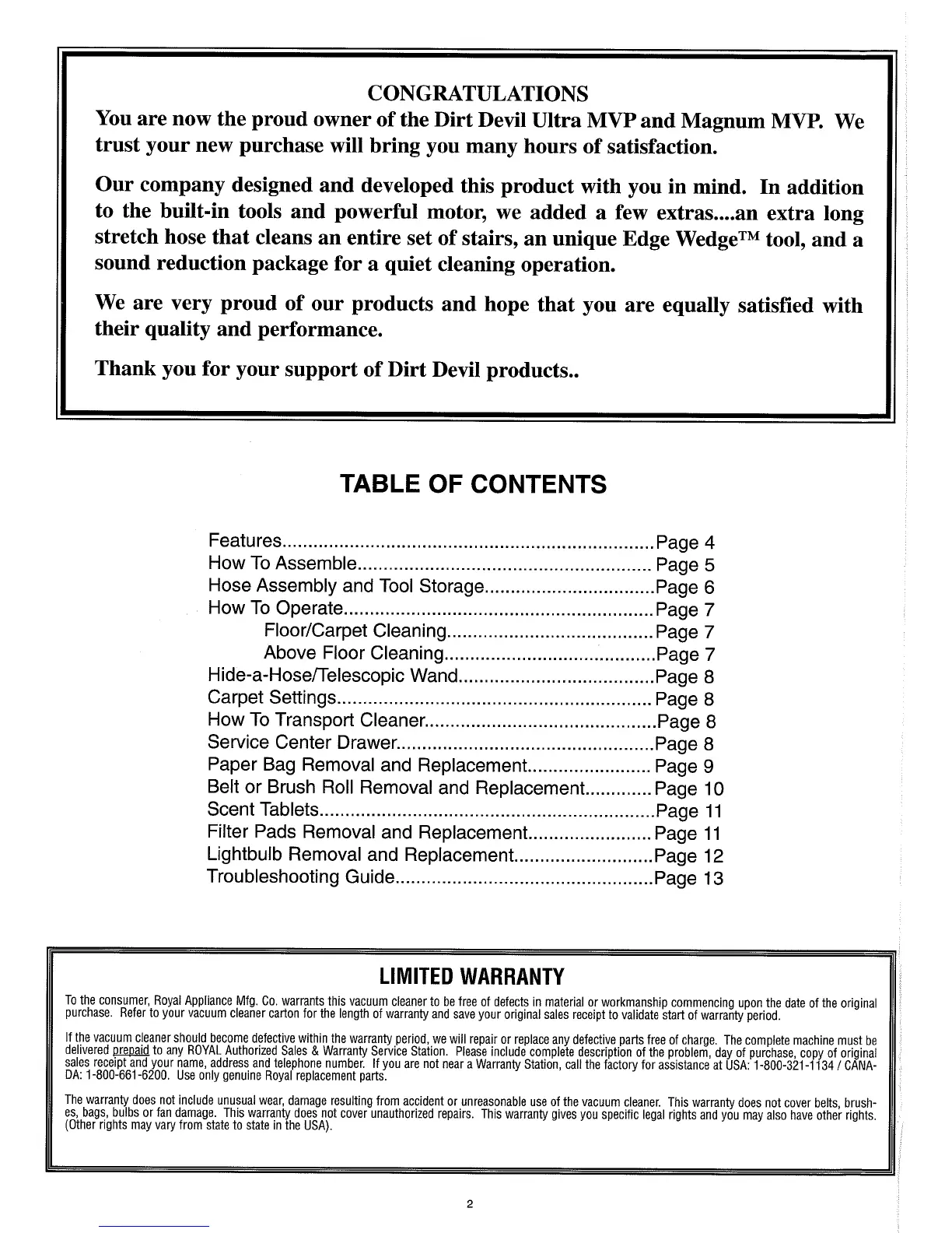 Dirt Devil ultramvp - Limited Warranty; Warranty Coverage Details