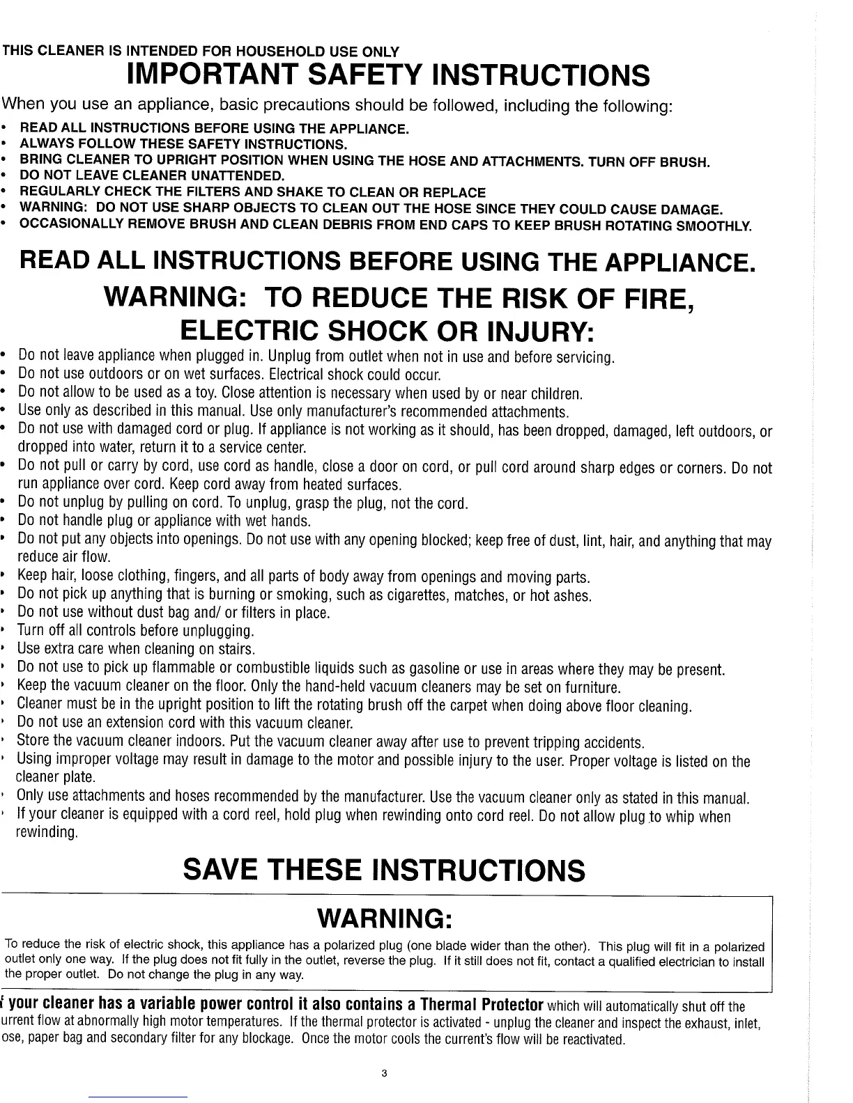 Dirt Devil ultramvp - Important Safety Instructions; General Safety Precautions