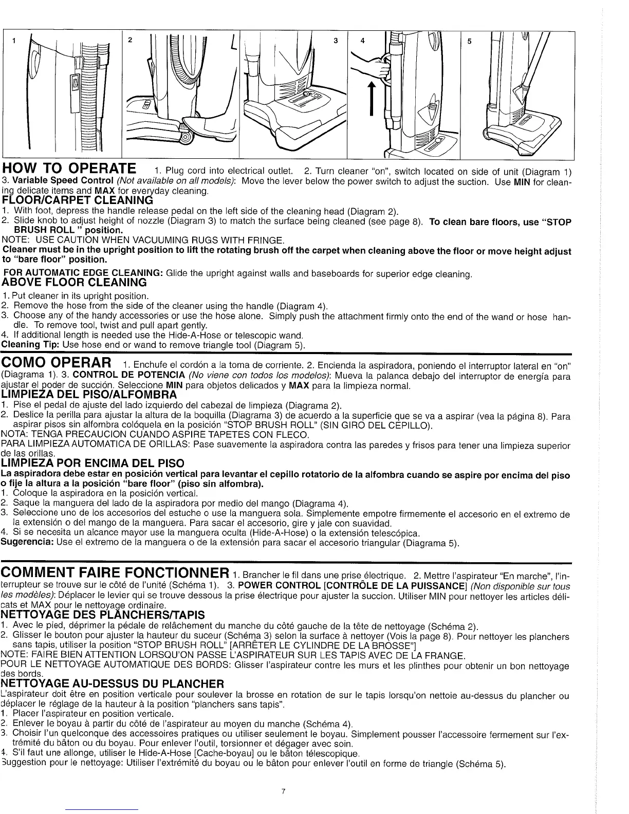 Dirt Devil ultramvp - How to Operate; Floor and Carpet Cleaning; Above Floor Cleaning