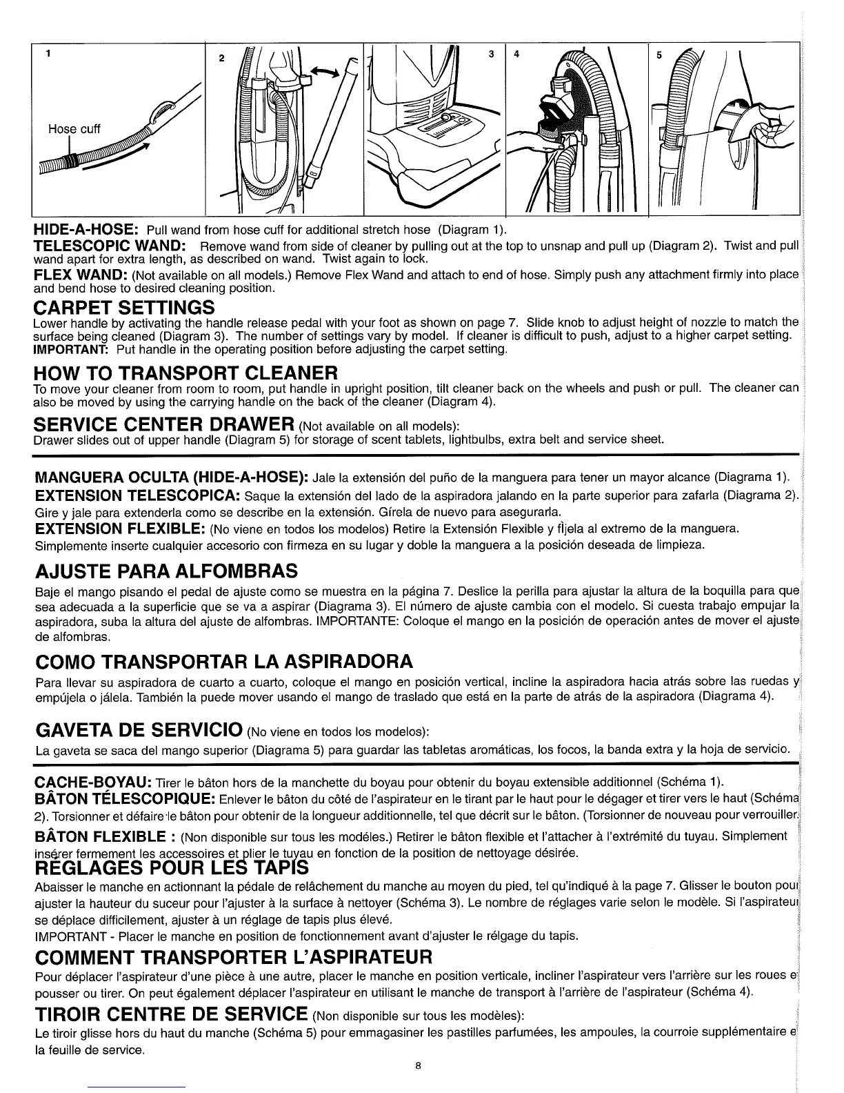 Dirt Devil ultramvp - Vacuum Cleaner Features and Accessories; Hose and Wand Extensions; Service Center Drawer; Carpet Settings and Transport