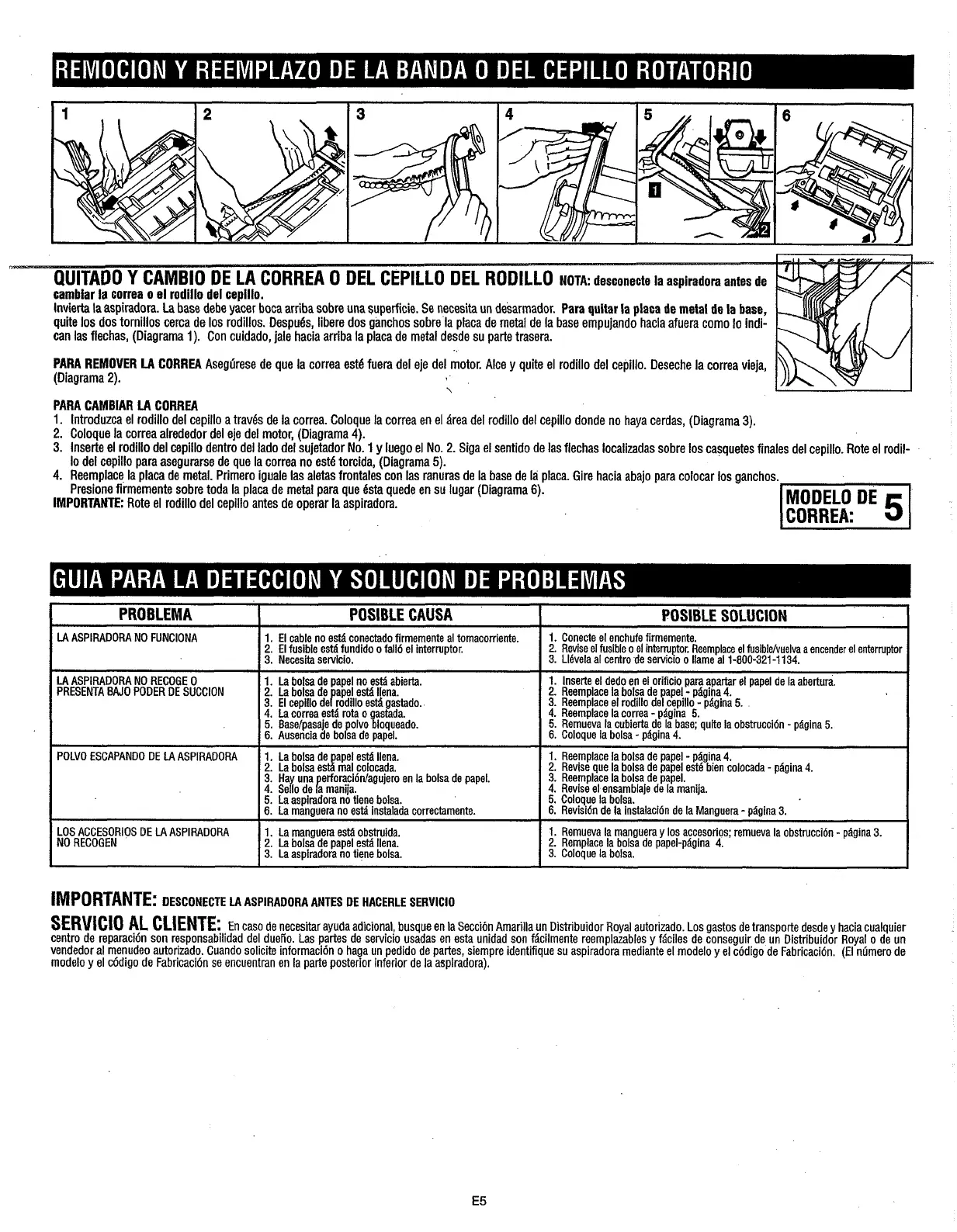 CAMBIO DE LA CORREA O DEL CEPILLO DEL RODILLO