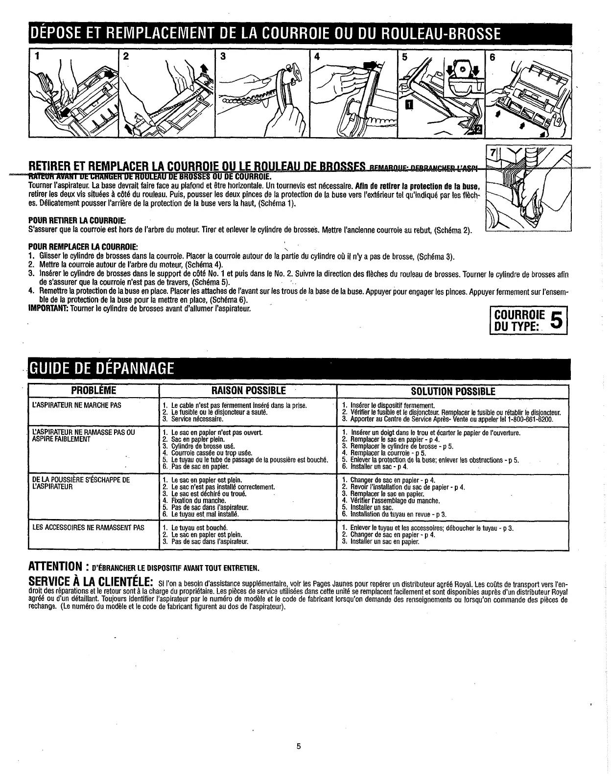 la charge du proprihtaire. Les pieces de service utilis6es dans cette unit6 se remplacent facilement et sont disponibles aupres d'un distributeur Royal