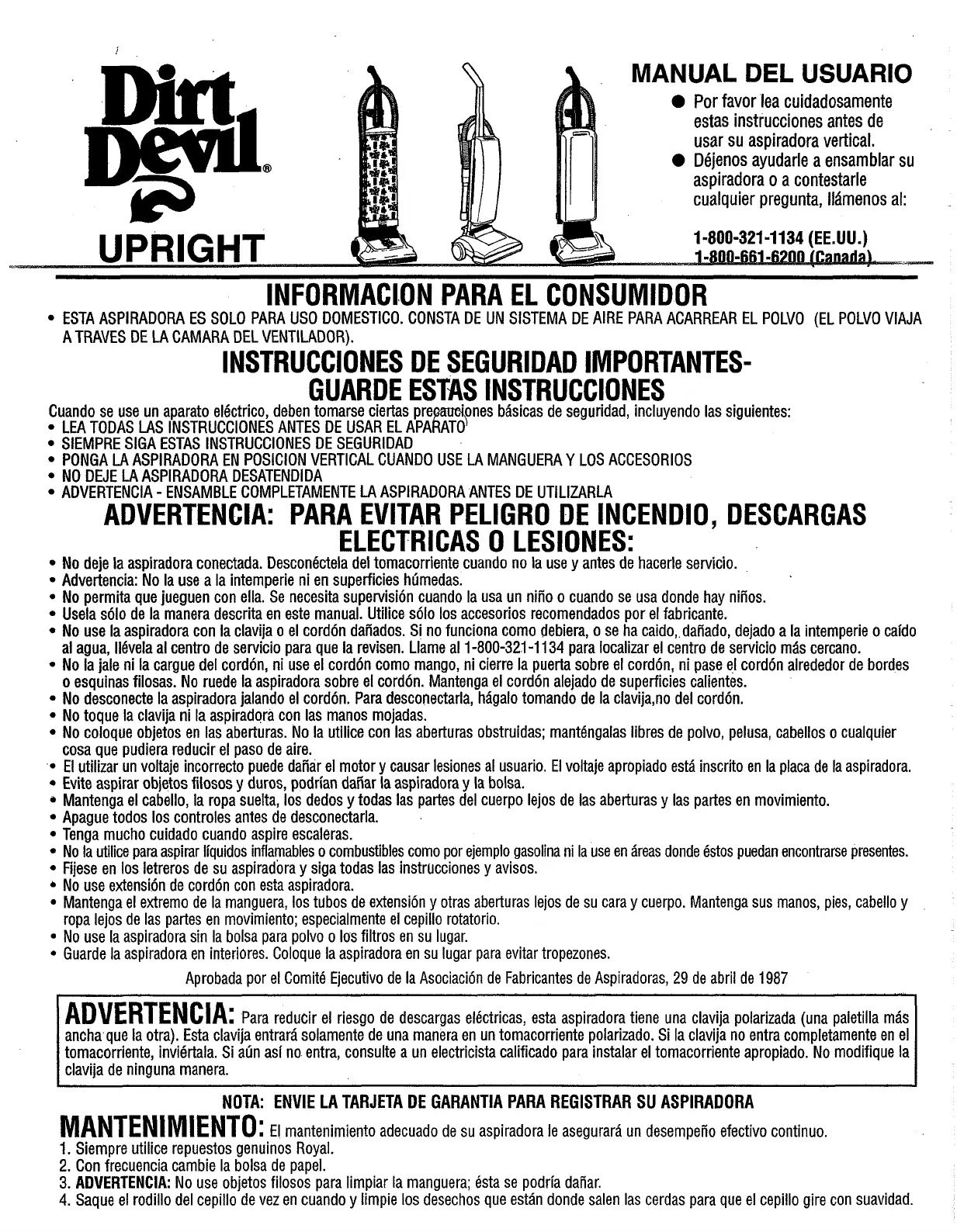 mantenimiento adecuado de su aspiradora le asegurara un desempefio efectivo continuo.