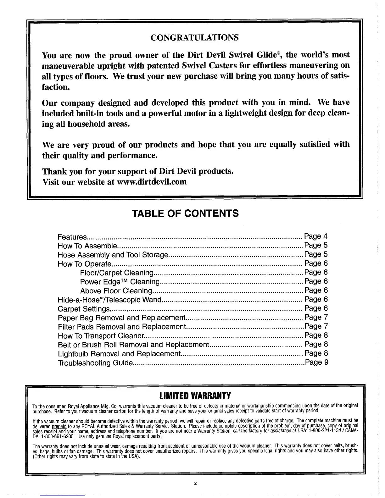 website at www.dirtdevil.com