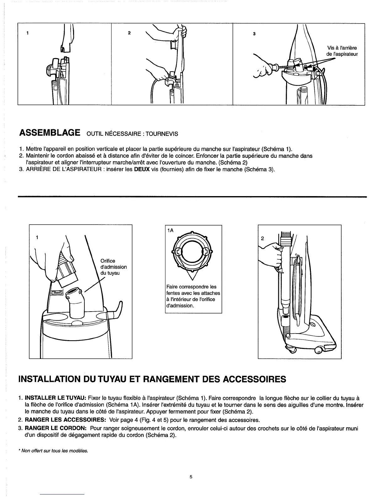 I'aspirateur (Schema 1). Faire correspondre la tongue fleche sur le collier du tuyau