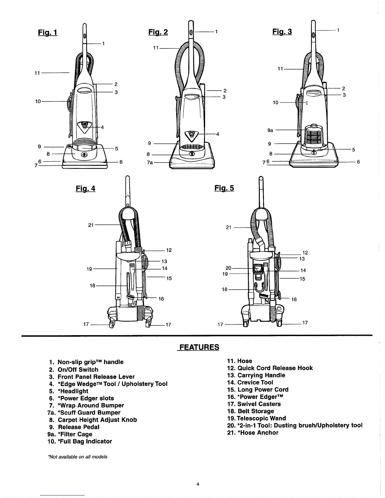Dirt Devil Upright vacuum - Vacuum Cleaner Components and Features; Detailed Vacuum Diagrams; Feature Identification List