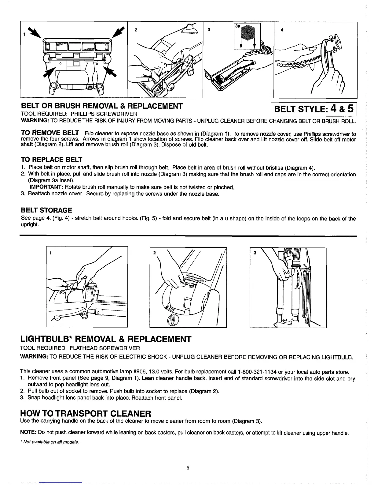 shaft (Diagram 2). Lift and remove brush roll (Diagram 3). Dispose of old belt.