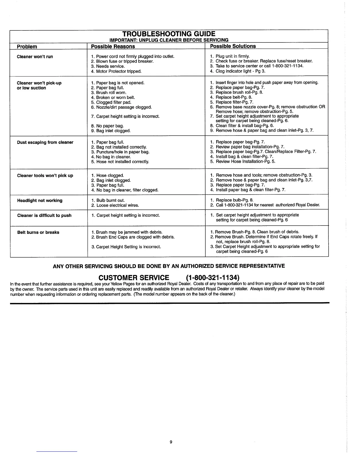 by the owner. The service parts used in this unit are easily replaced and readily available from an authorized Royal Dealer or retailer. Always identify your cleaner by the model