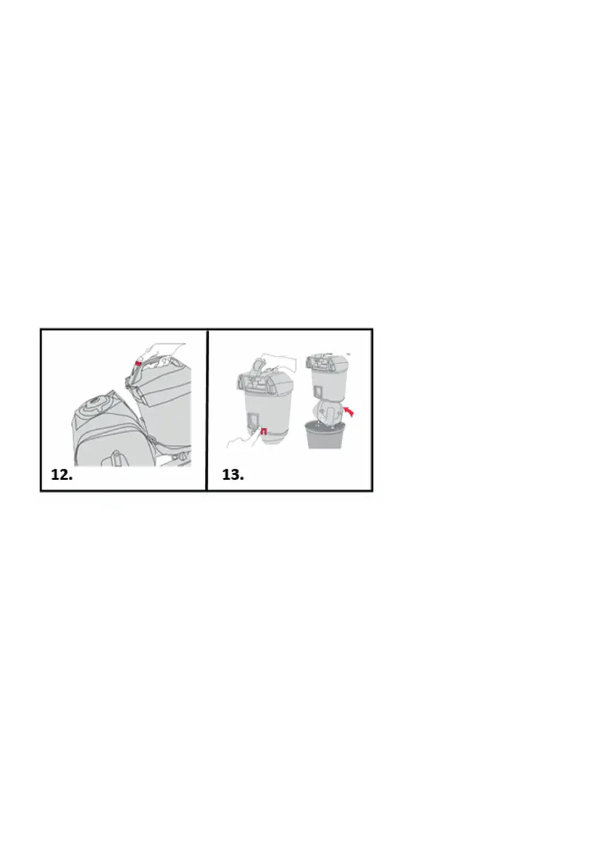 13. Tenez le bac à poussière au-dessus de la poubelle. Appuyez