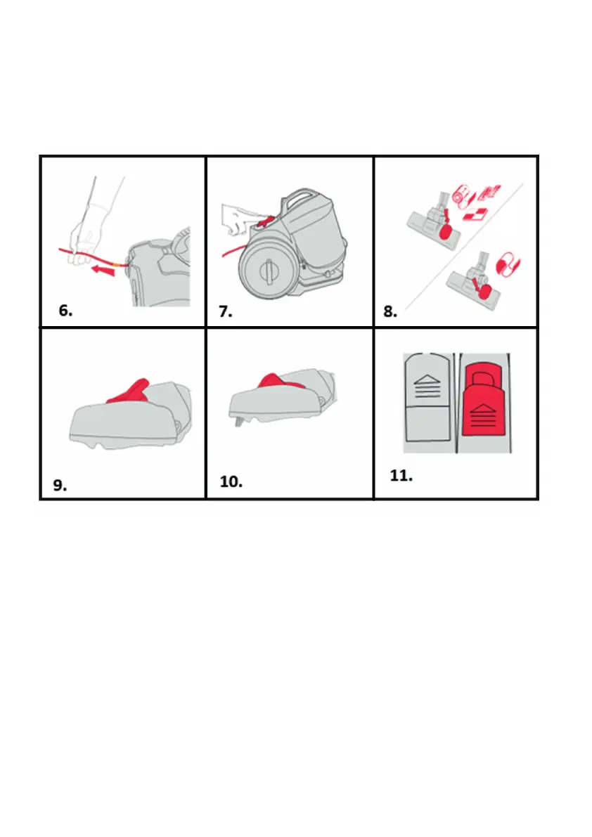 8. Per usare l'aspirapolvere su tappeti/moquette, spostare in avanti