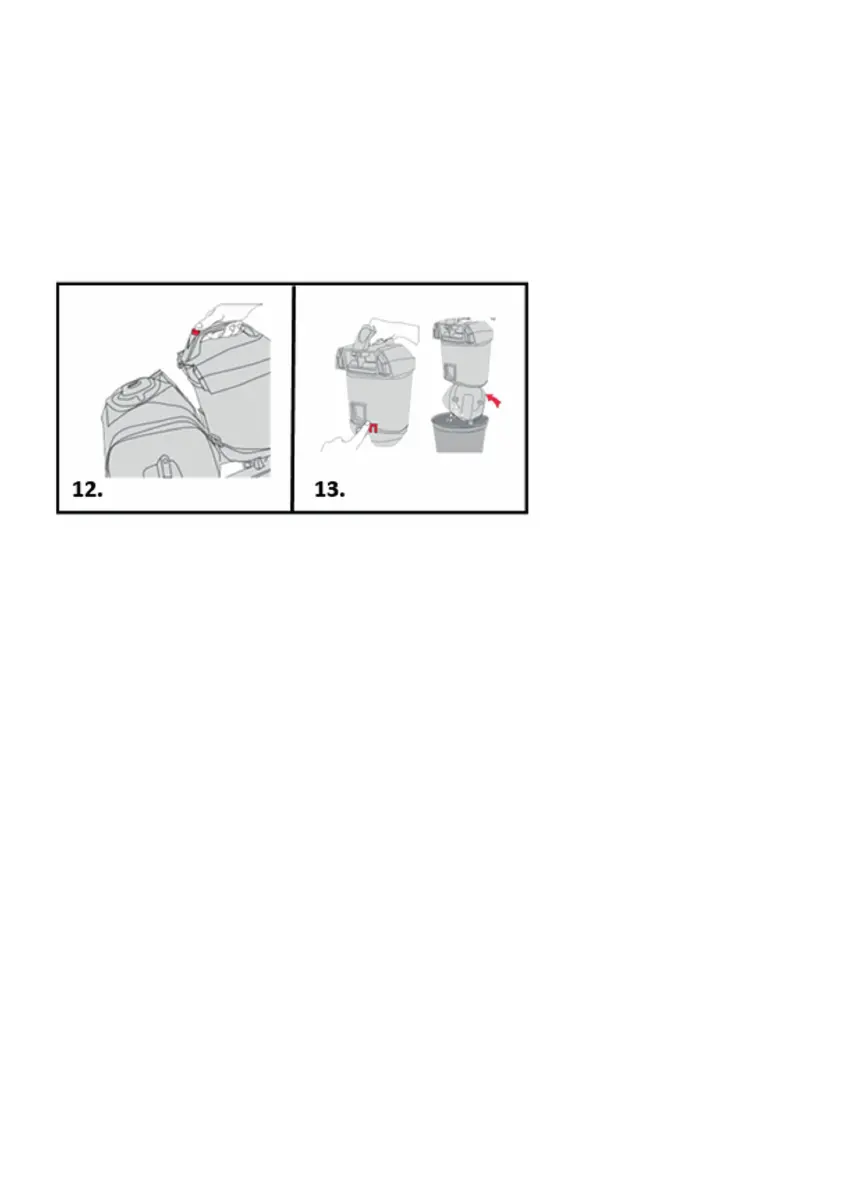 12. Pulse el botón de liberación del depósito de polvo. Levante