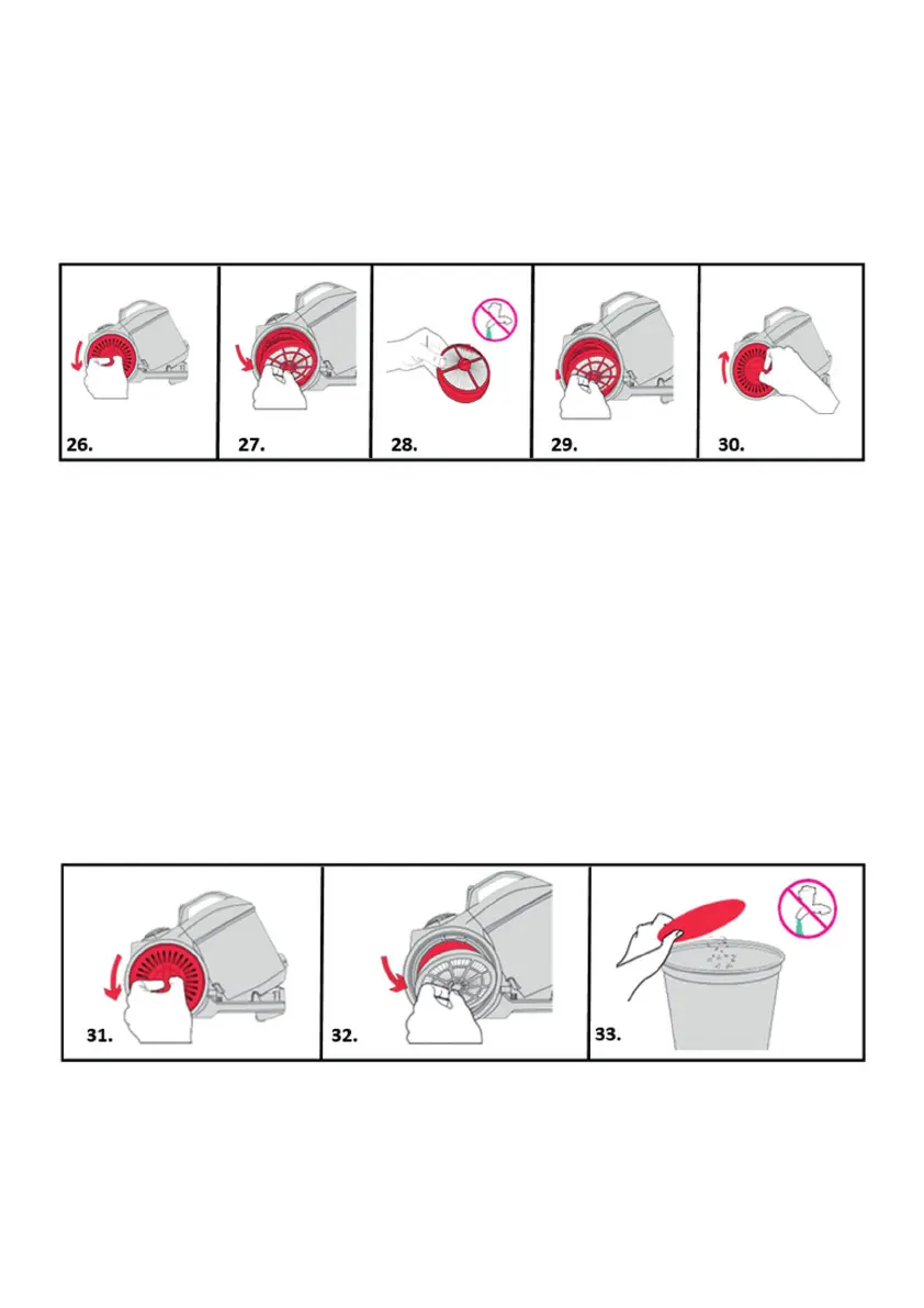 29. Alinee las lengüetas de la tapa del ltro con la rueda y gire
