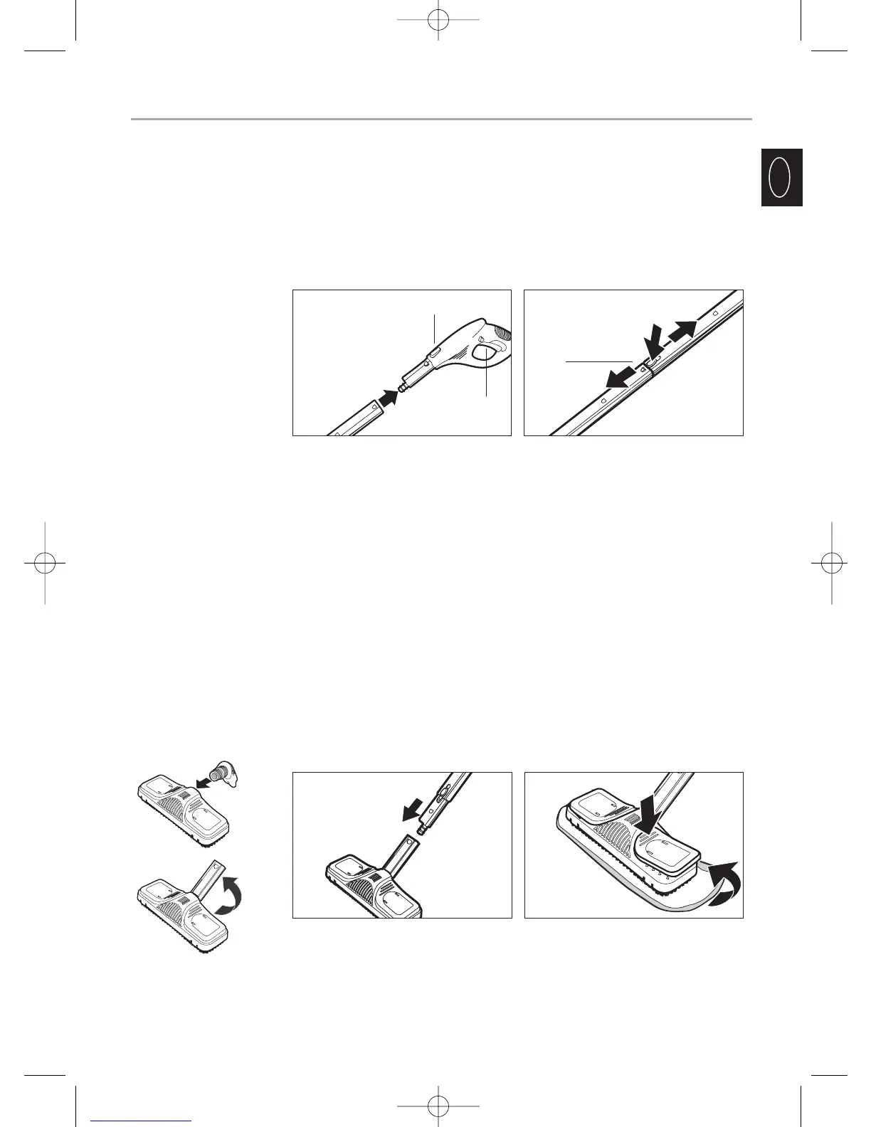 Bringen Sie die Bodendüse am Ende der Verlängerungsrohre an. Ach-