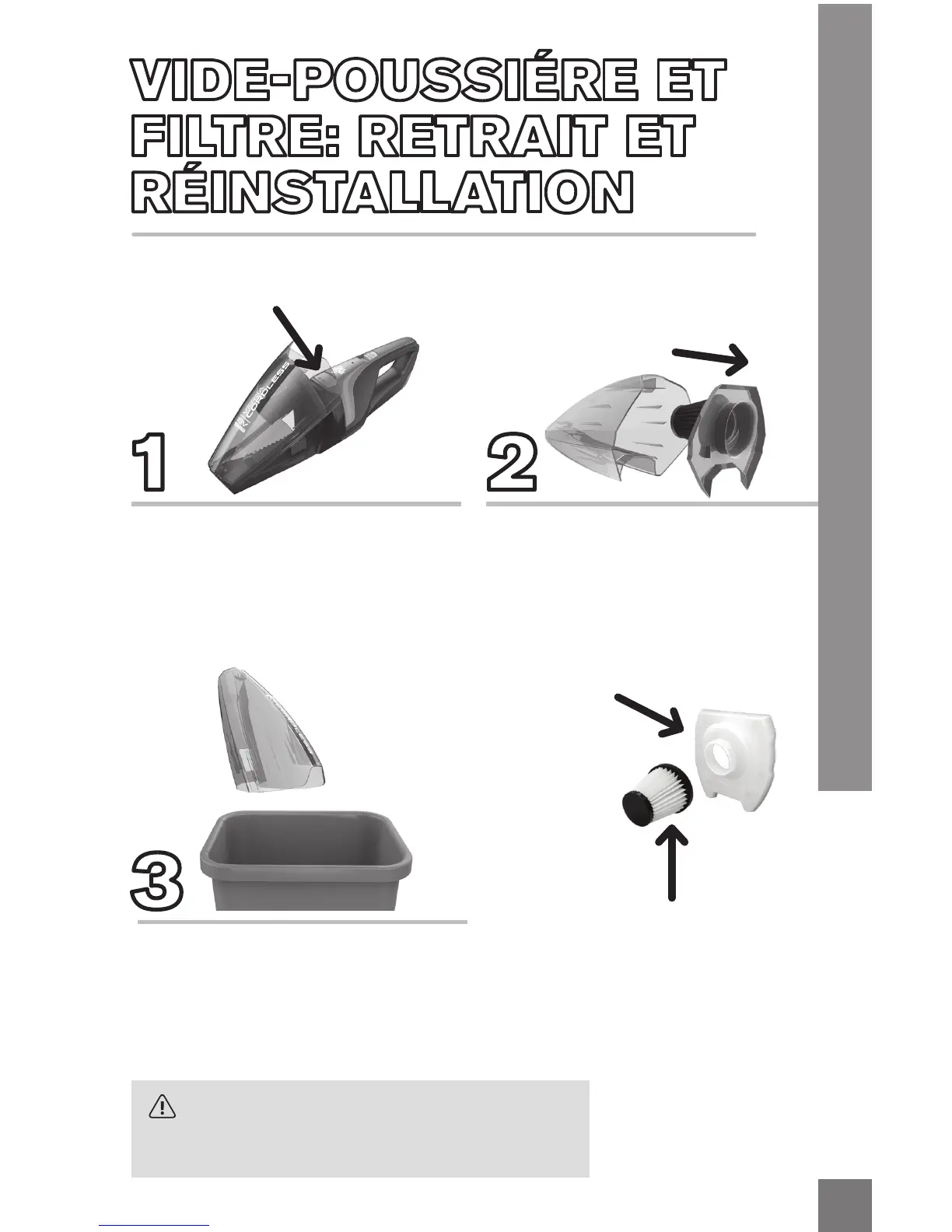 VIDEPOUSSIÉRE ET FILTRE: RETRAIT ET RÉINSTALLATION